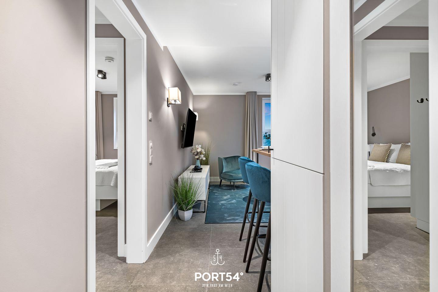 Bitte beachten Sie, dass die Fenster mit Folien beklebt sind und es sich nicht um den tatsächlichen Ausblick handelt, da die Wohnung im Kellergeschoss liegt. Außerdem besteht eine Verbindungstür zur darüberliegenden Wohnung „Durchatmen“. Sprechen Sie uns gerne an, wenn Sie beide Wohnungen gemeinsam buchen möchten.