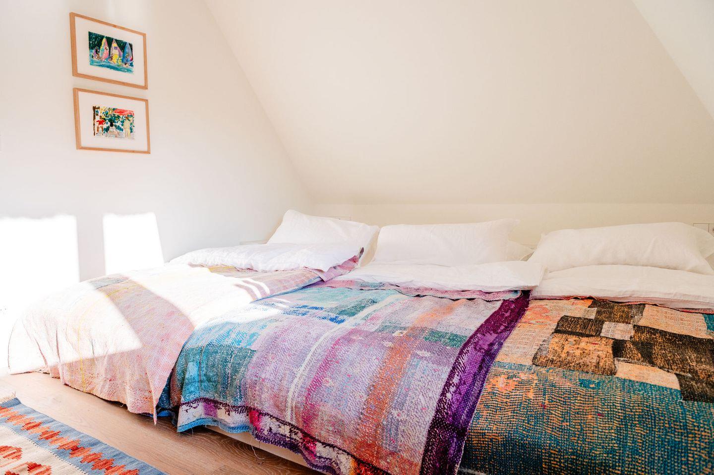 Das Haus verfügt im Obergeschoss über vier Schlafzimmer: drei sind mit Doppelbetten ausgestattet, während das vierte Schlafzimmer ein gemütliches, großes Familienbett bietet. Damit finden insgesamt bis zu 8 Personen Platz, sei es für erholsame Nächte mit der Familie oder für eine individuelle Reisegruppe.