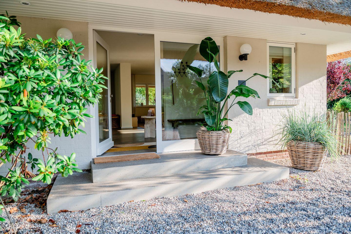 Das traditionelle Reetdach fügt sich harmonisch in die malerische Umgebung ein und verstärkt das Gefühl von nordischer Gelassenheit.