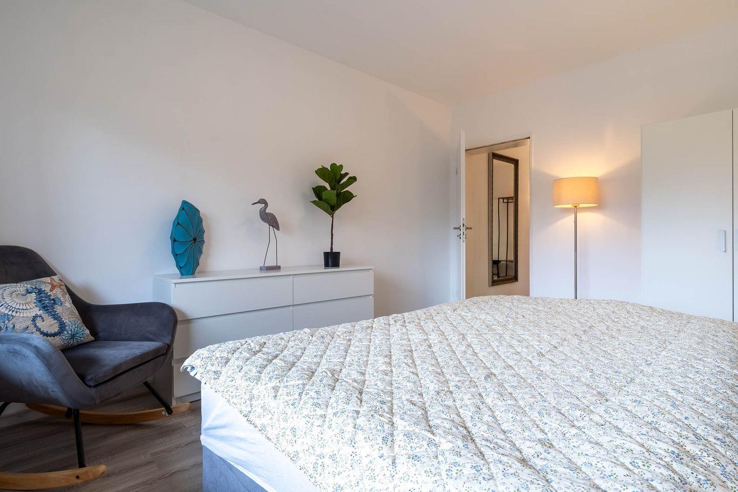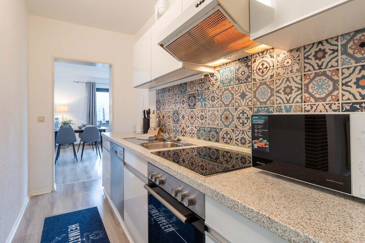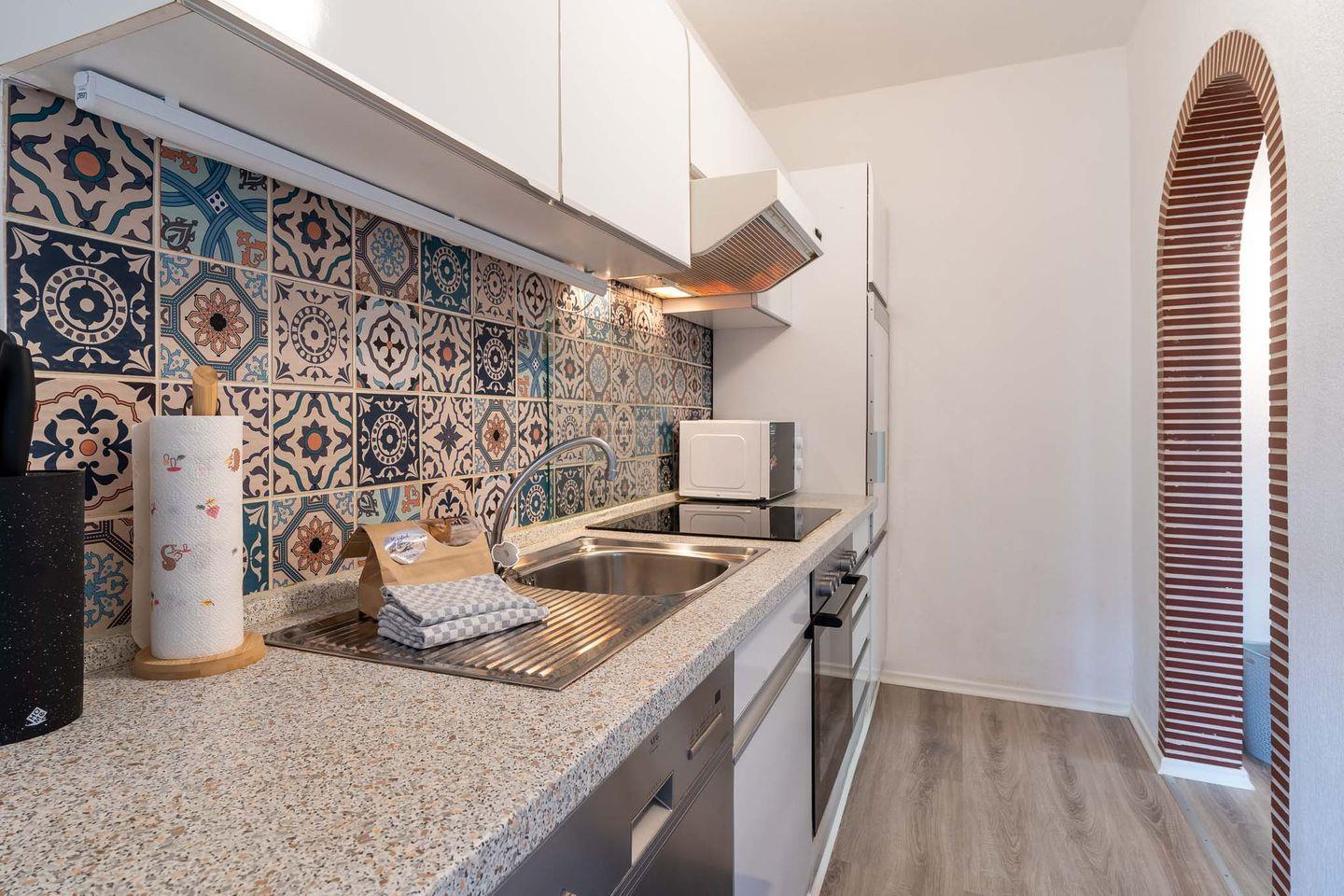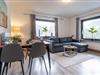 Die Wohnung selbst befindet sich im Erdgeschoss und ist ideal ausgestattet, um Ihnen während Ihres Aufenthalts den größtmöglichen Komfort zu bieten. In der offenen Küche, die zum Wohnzimmer führt, finden Sie alles, was Sie für die Zubereitung von köstlichen Mahlzeiten benötigen, darunter einen Cerankochfeld, einen Elektrobackofen und eine Spülmaschine. Zudem erwarten Sie moderne Küchenutensilien sowie eine Kaffeemaschine, Toaster und Wasserkocher. Genießen Sie die zubereiteten Speisen im gemütlichen Essbereich oder auf der gemeinschaftsterrasse, die mit Gartenmöbeln ausgestattet ist und einen wunderbaren Blick in den Garten bietet.