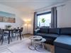 Der Wohnbereich ist modern und freundlich eingerichtet und lädt zum Entspannen ein. Ein gemütliches Sofa sowie eine Sofaecke sorgen für Erholung nach einem ereignisreichen Tag. Es sind zwei Fernseher und ein Radio vorhanden, so dass Sie im Abendprogramm schwelgen oder einfach nur die ruhige Atmosphäre genießen können.
