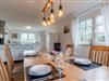 Im Esszimmer ist ein großer Esstisch, der allen Personen Platz bietet. Von hier aus geht es dann weiter in den Wohnraum mit gemütlichem Sofa und TV.