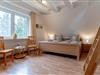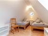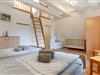Das Oberschoß ist in zwei Bereiche eingeteilt, jeweils mit einem Master-Schlafzimmer mit einem 180x200cm Doppelbett und Kleiderschrank und je einem weiteren Schlafzimmer, eines mit einem 140x200cm Doppelbett und eines mit zwei Einzelbetten.