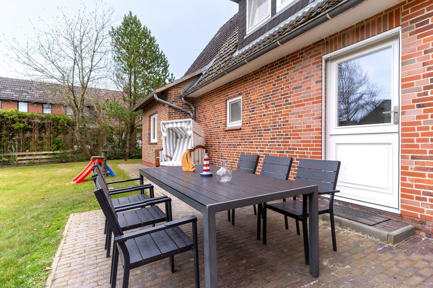 Ferienhaus Frieseneiche für bis zu 10 Personen, großer Garten, Terrasse, Küche, Esszimmer, Wohnzimmer, 3x Duschbad mit WC, 5x Schlafzimmer,