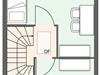 Erdgeschoss: Wohnzimmer mit Küche, Duschbad, Abstellraum.