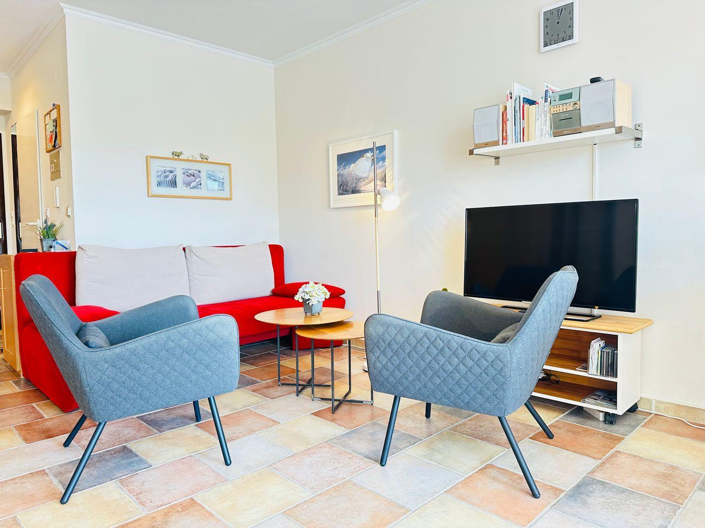 Besonders einladend ist die sonnige Loggia, die mit Gartenmöbeln ausgestattet ist und sich hervorragend für ein gemütliches Frühstück oder entspannte Stunden im Freien eignet.