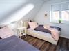 Im 1. Obergeschoss finden Sie zwei Schlafzimmer mit komfortablen Boxspringbetten (180 x 200 cm), ein Schlafzimmer mit zwei Einzelbetten (90 x 200 cm) und ein Badezimmer mit Dusche, Badewanne und WC.