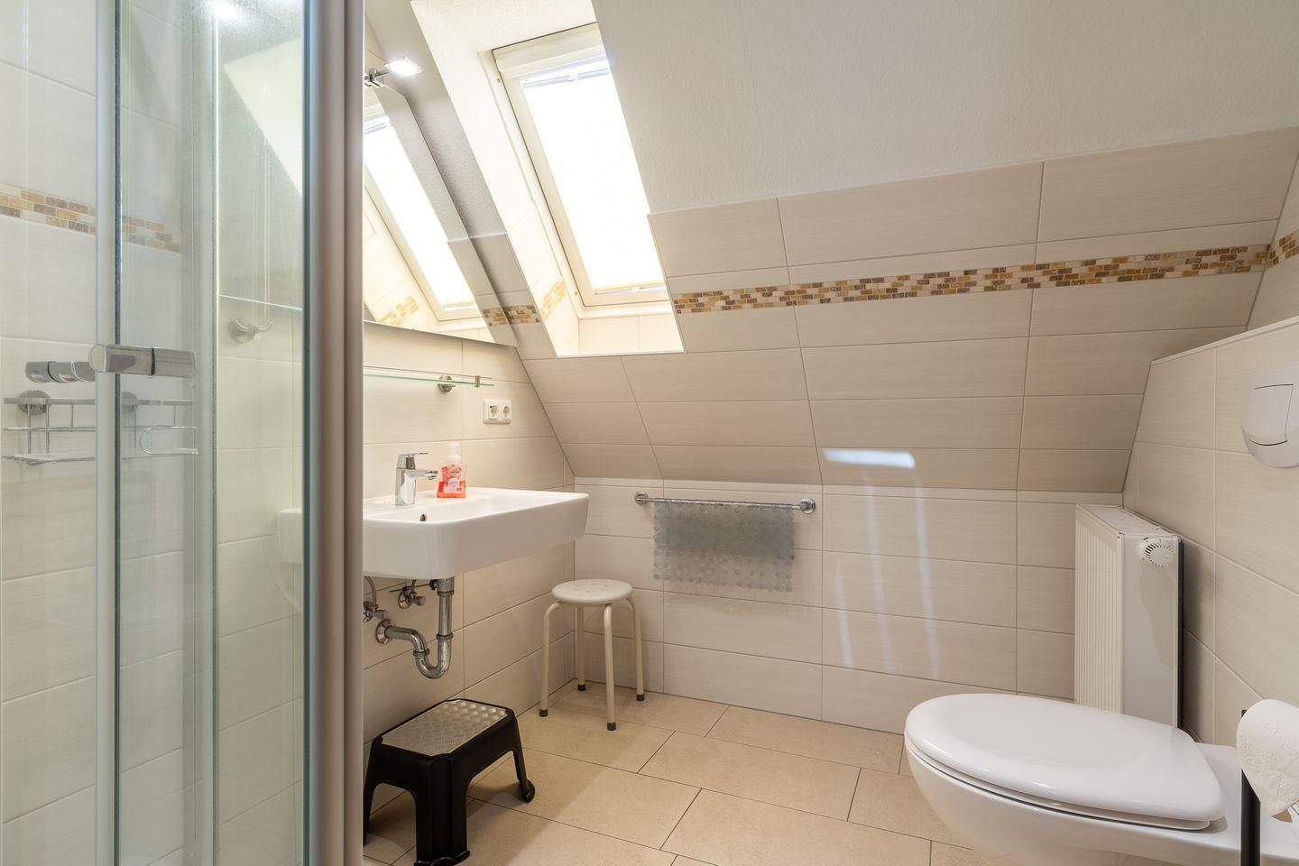 • Badezimmer: Helles Duschbad mit Fenster für einen frischen Start in den Tag.