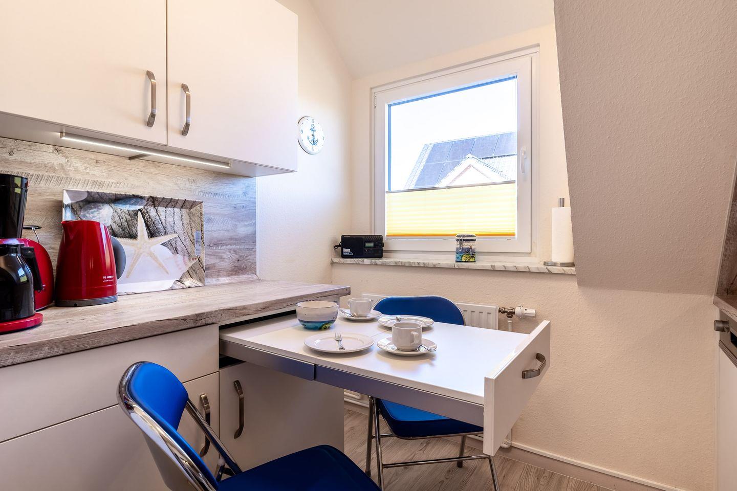 • Küche: Moderne Ausstattung mit Geschirrspüler, Cerankochfeld, Backofen, Kühlschrank mit Gefrierfach, Kaffeemaschine, Toaster und Wasserkocher – ideal für die Zubereitung leckerer Mahlzeiten.