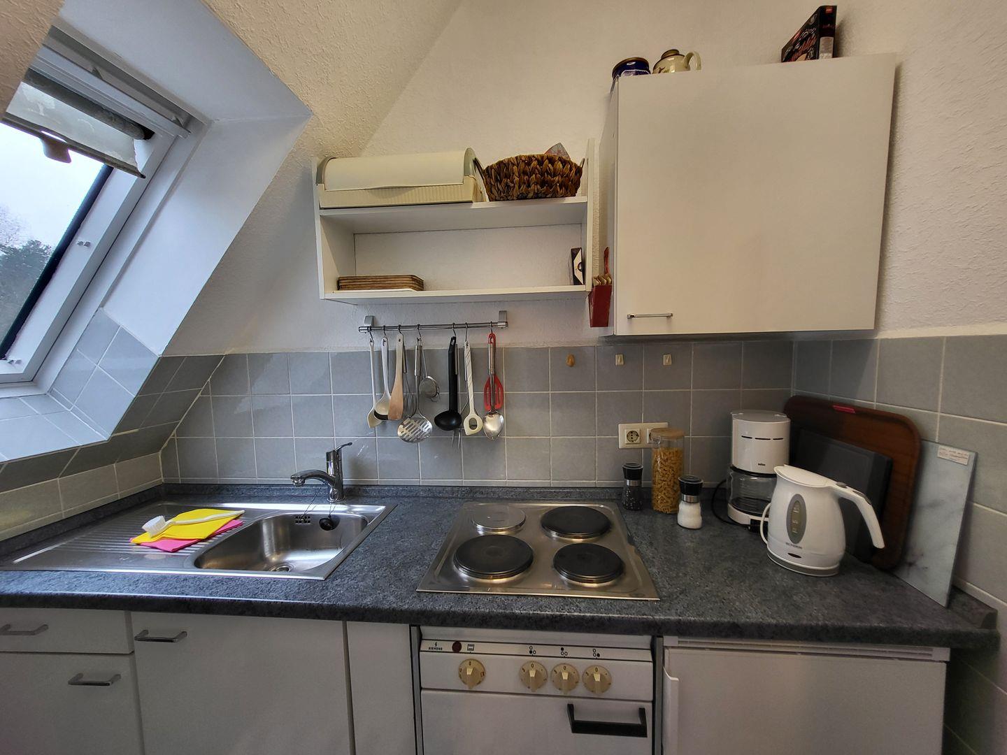 ruhig gelegenes, alleinstehendes Haus mit 3 Wohnungen, Whg. 1. OG links, WLAN, Nichtraucher, bis zu 4 Personen, privater Stellplatz auf Grundstück, separate Küche, Schlafzimmer mit Doppelbett, überdachter Fahrradunterstellplatz, gemeinschaftliche Gartennutzung, keine Haustiere, familienfreundlich