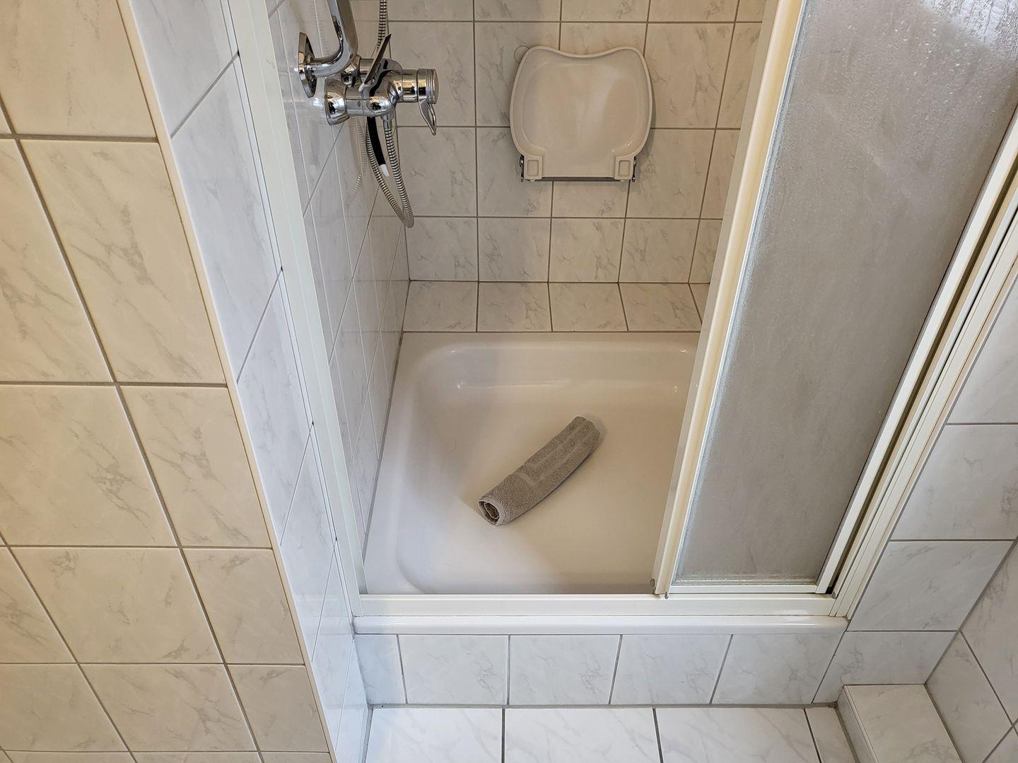 Duschbad mit WC und Fenster.