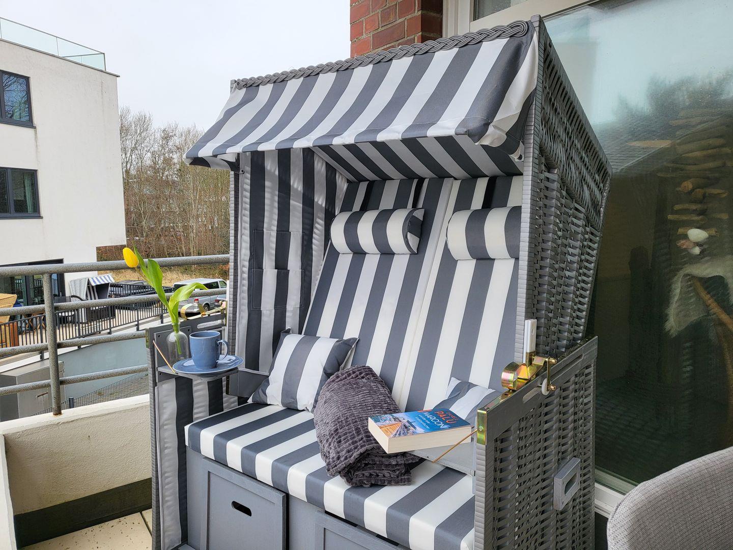 Der Strandkorb lädt mit seinem atemberaubenden Ausblick auf die Nordsee zum entspannen ein.