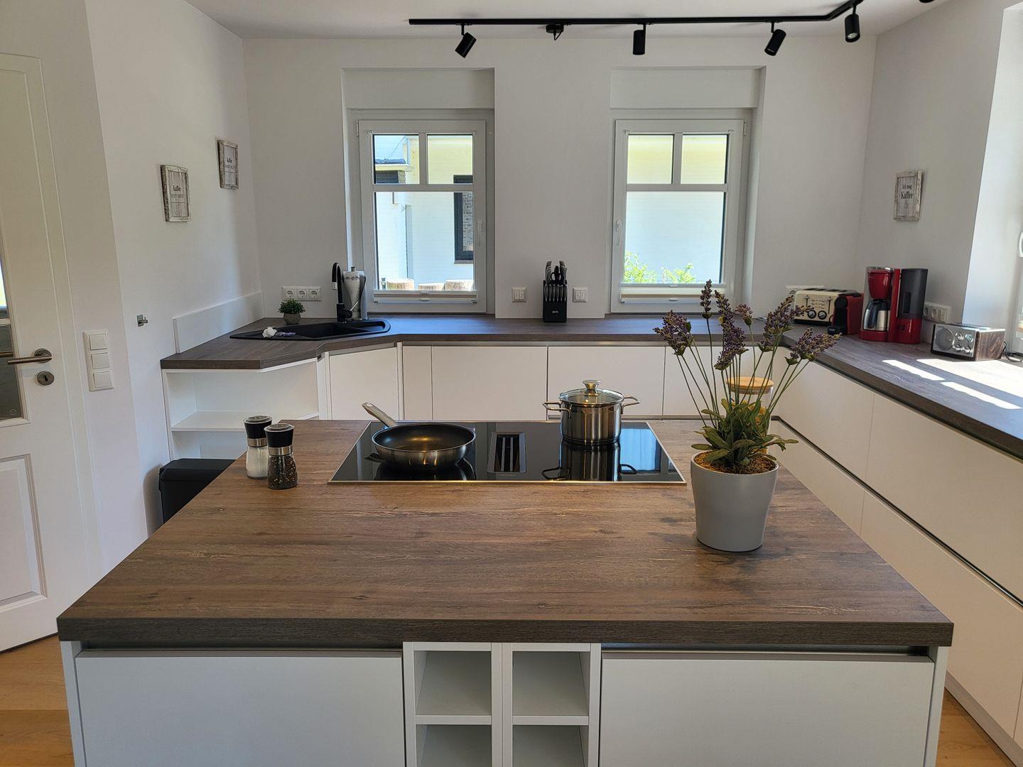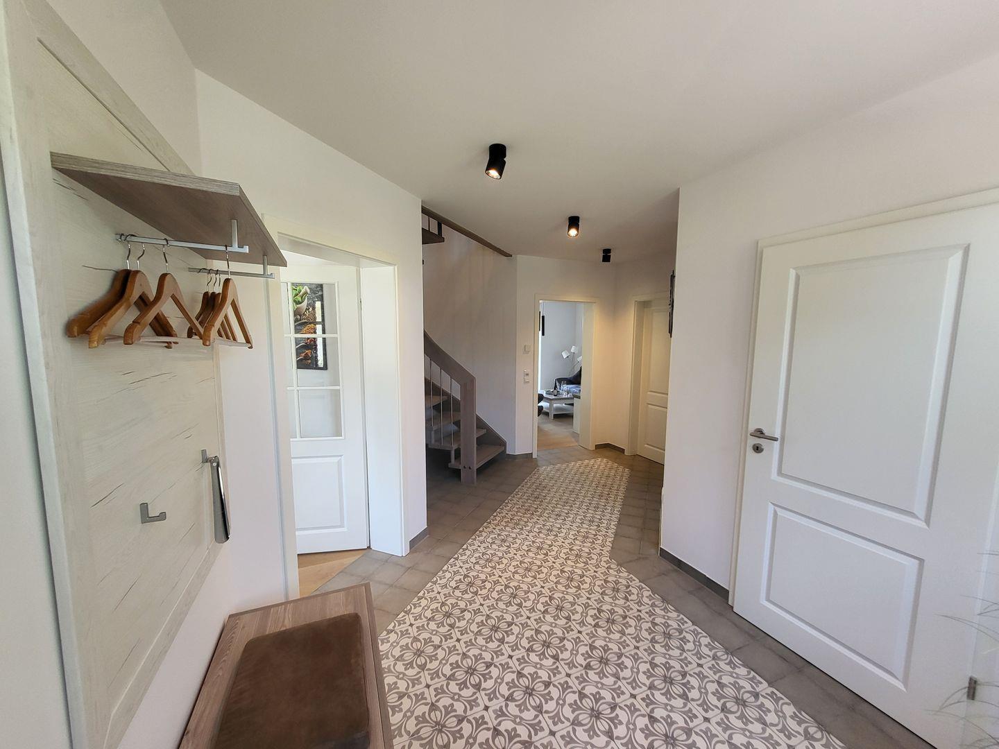 Das im Jahr 2024 erbaute, freistehende Ferienhaus besticht durch eine moderne und helle Innengestaltung. Der großzügige Wohnbereich, versehen mit einem komfortablen Parkettboden, lädt zum Verweilen ein und bietet nicht nur zwei gemütliche Sofas, sondern auch einen Essbereich, der zu gemeinsamen Mahlzeiten einlädt. Die offene Küche ist mit hochwertigen Annehmlichkeiten ausgestattet, darunter ein Induktionsherd, Backofen, Mikrowelle, Weinkühler und Geschirrspüler, wodurch das Kochen zum Vergnügen wird. Ein Kühlschrank sowie alle notwendigen Küchenutensilien stehen Ihnen ebenfalls zur Verfügung.