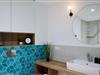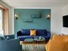 Der offene Grundriss des ca. 94 m² großen Apartments schafft ein großzügiges Wohngefühl. Der Wohn- und Essbereich mit integrierter Küche und Design-Polstermöbeln lädt zum entspannten Zusammensein ein und grenzt direkt an Ihre private Sonnenterrasse. Ein Highlight ist die hochwertige Küche mit türkisfarbenen Fronten und goldenen Armaturen – stilvoll und maritim. Zwei Schlafzimmer mit bequemen Boxspringbetten bieten Platz für vier Gäste. Besonders komfortabel: zwei moderne Badezimmer mit begehbarer Dusche, eines davon mit eigener Holzsauna.