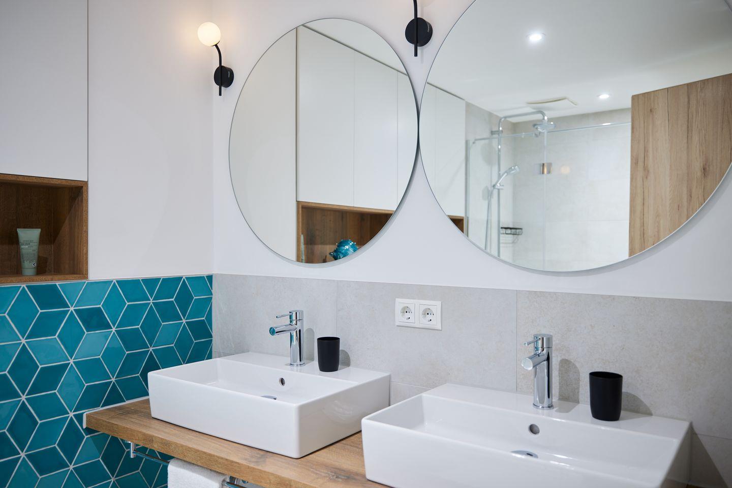 Das ca. 105 m² große Apartment versprüht ein einzigartiges Gefühl von Freiheit und Luxus. Der großzügige Wohn- und Essbereich mit integrierter Küche und Design-Polstermöbeln lädt zum gemütlichen Zusammensein ein und grenzt direkt an Ihren großen, privaten Balkon. Nicht nur die hochwertige Küche mit türkisfarbenen Fronten und goldenen Armaturen ist ein Highlight dieser Unterkunft: Über dem Wohnraum befinden sich ein Loungebereich auf zwei offenen Galerien, die über eine Brücke miteinander verbunden sind und zum Entspannen einladen.