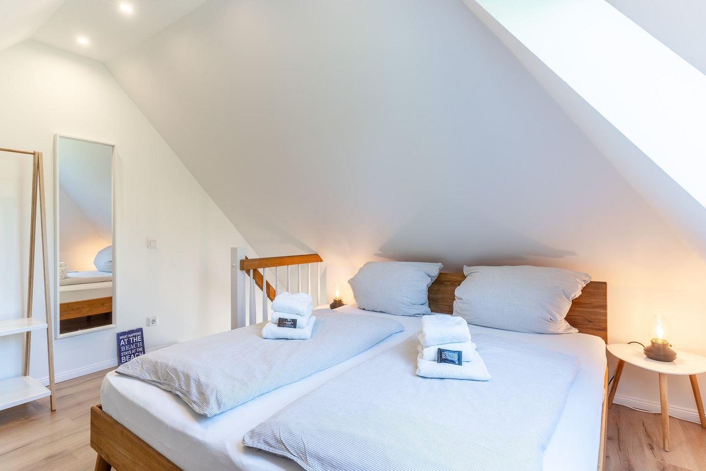 Willkommen in der modernen 3-Zimmer-Ferienwohnung „Wellenreiter“ im idyllischen Ortsteil Dorf von St. Peter-Ording! Mit ca. 62 m² Wohnfläche über zwei Ebenen (Ober- und Dachgeschoss) bietet diese stilvoll eingerichtete Wohnung Platz für bis zu 4 Personen – perfekt für Familien oder Paare, die Ruhe und Erholung in Nordseenähe suchen.