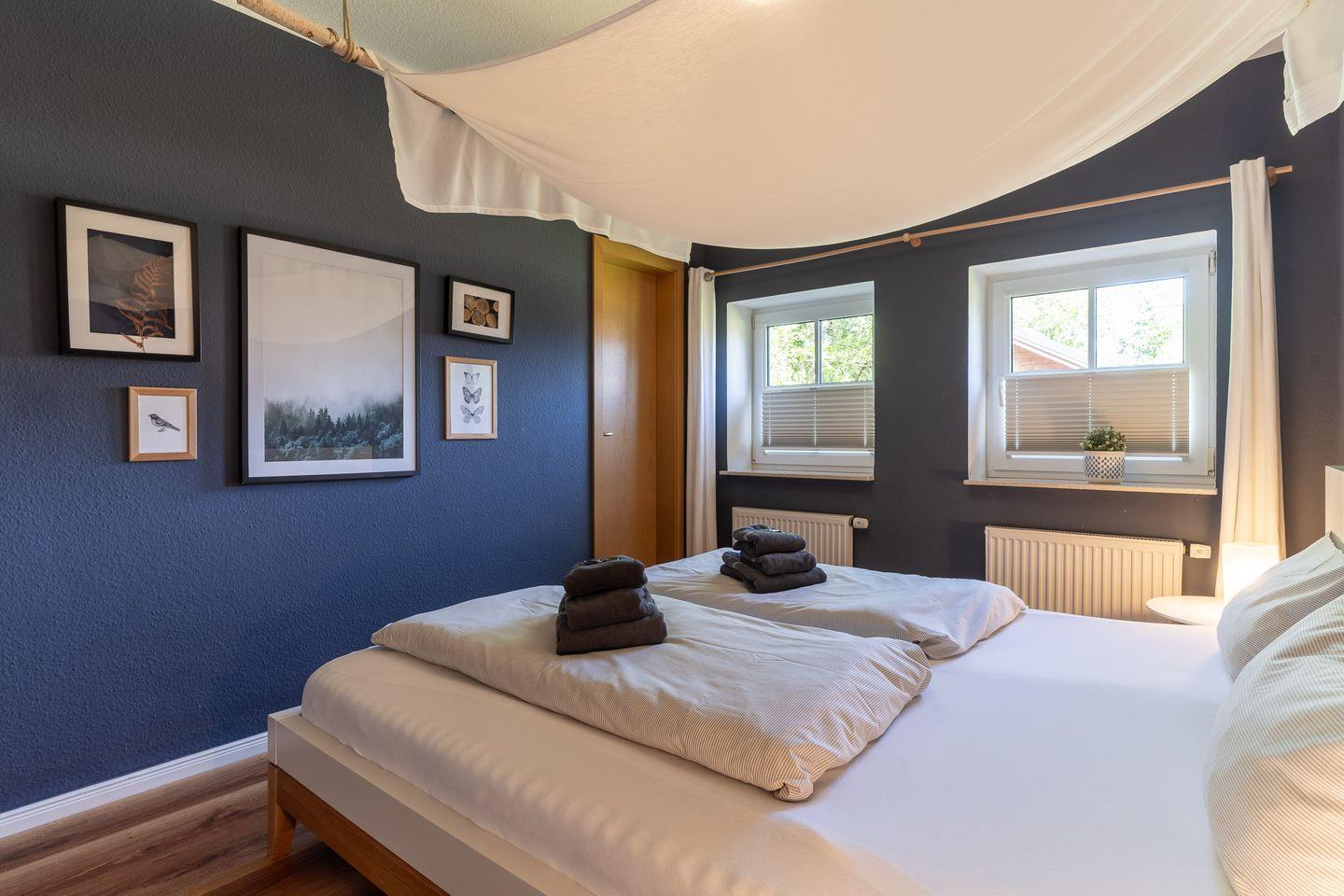 Die moderne Küche ist voll ausgestattet: Cerankochfeld, Backofen, Spülmaschine, Mikrowelle, Kühlschrank mit Gefrierfach, Wasserkocher, Toaster und Kaffeemaschine lassen keine Wünsche offen. Im Schlafzimmer finden Sie ein Doppelbett (135x200 cm), Kleiderschrank und Stauraum.