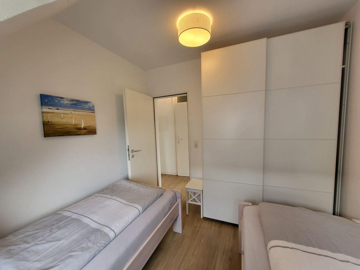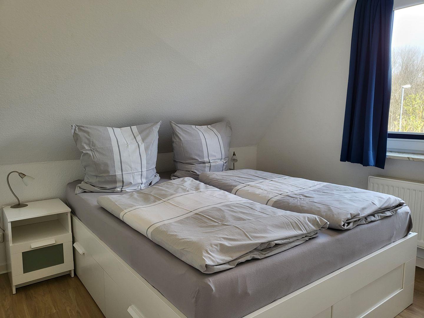 Die Unterkunft bietet Platz für bis zu vier Personen und ist kinderfreundlich. Es steht ein Schlafzimmer mit komfortablem Laminatboden sowie einem gemütlichen Bett (180x 200) zur Verfügung. Für zusätzliche Schlafmöglichkeiten sorgen zwei Einzelbetten (90x 200) im zweiten separaten Schlafzimmer. Ein Kinderhochstuhl ist ebenfalls kostenfrei vorhanden.
