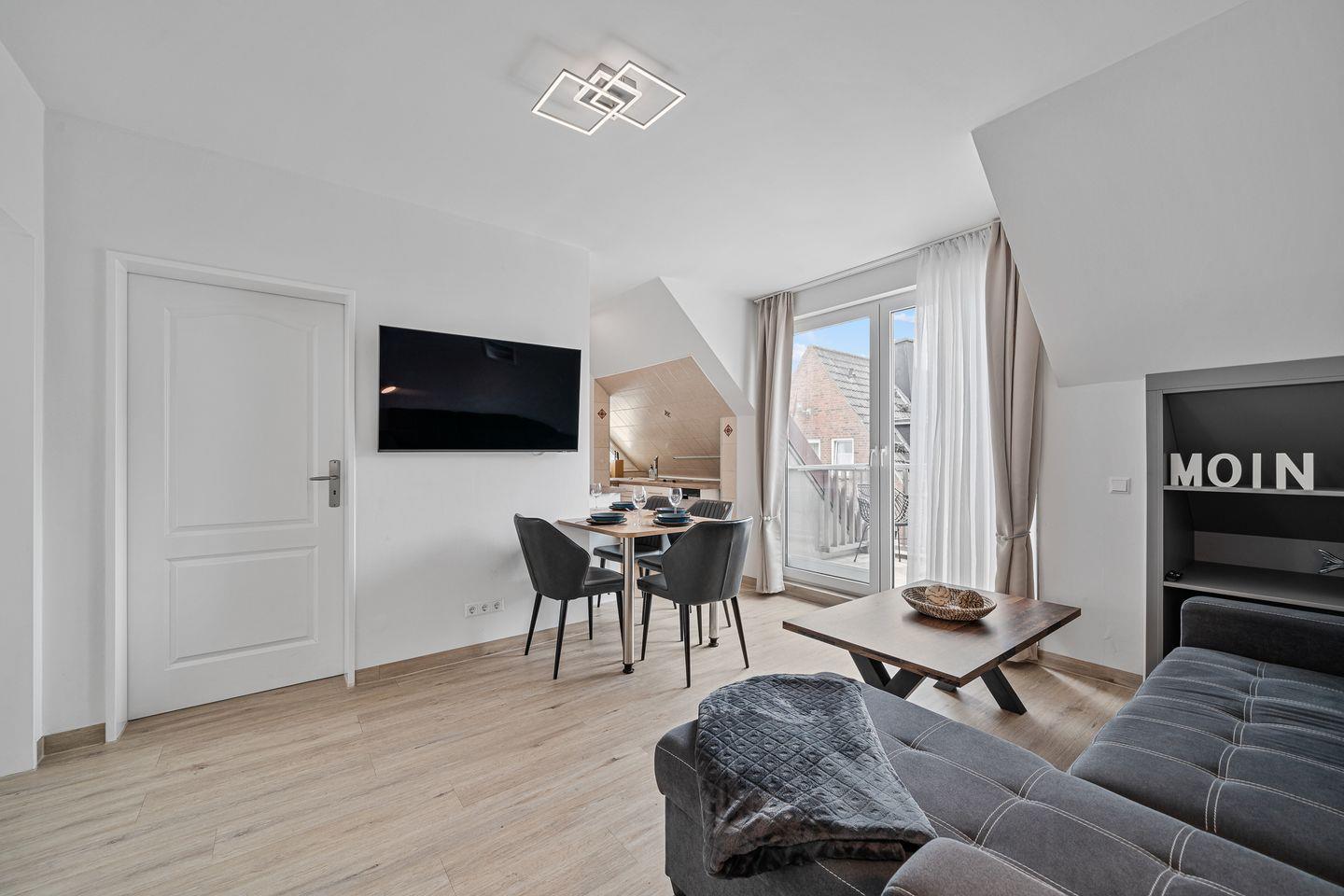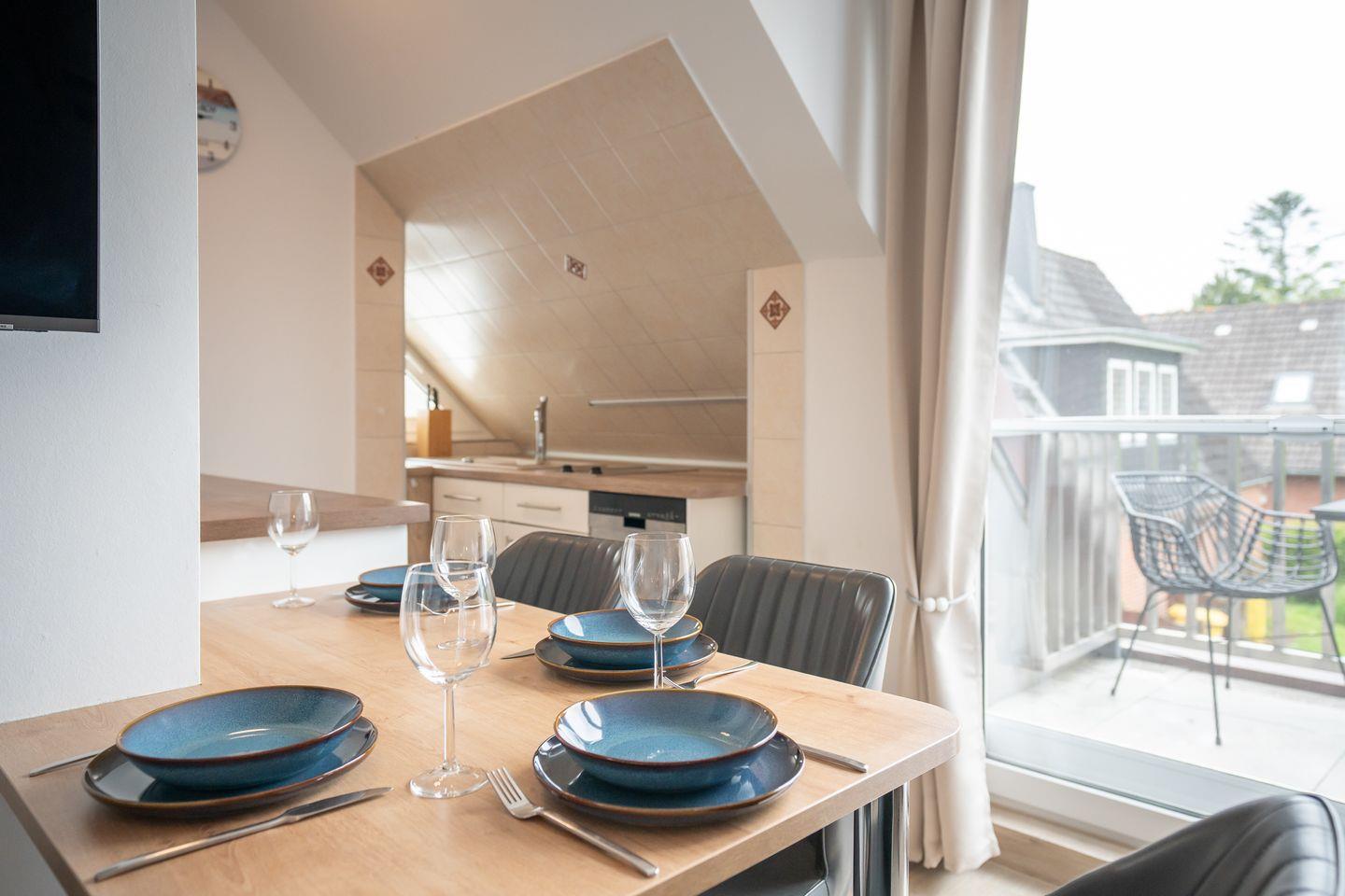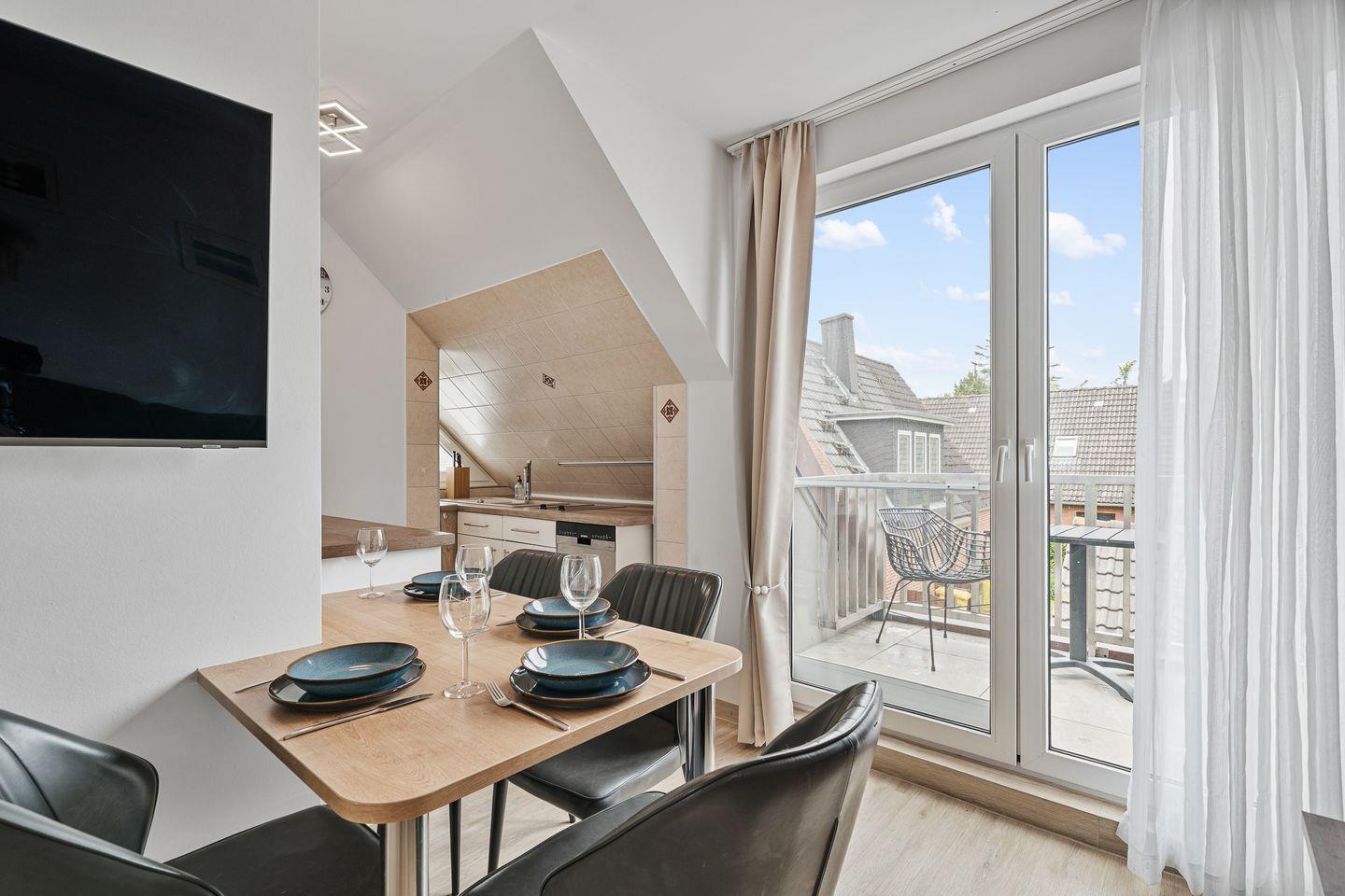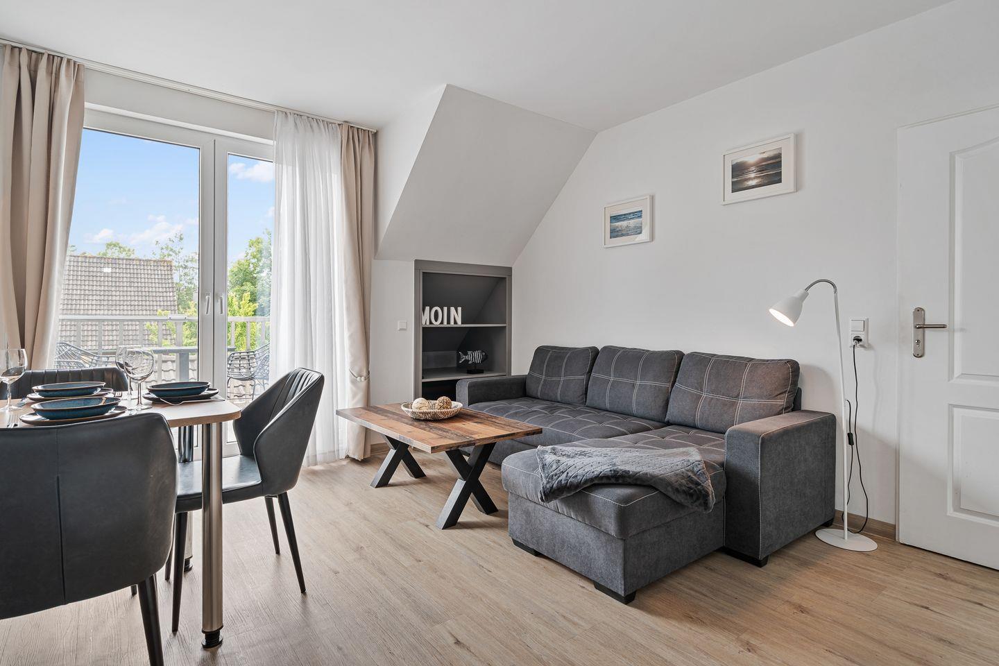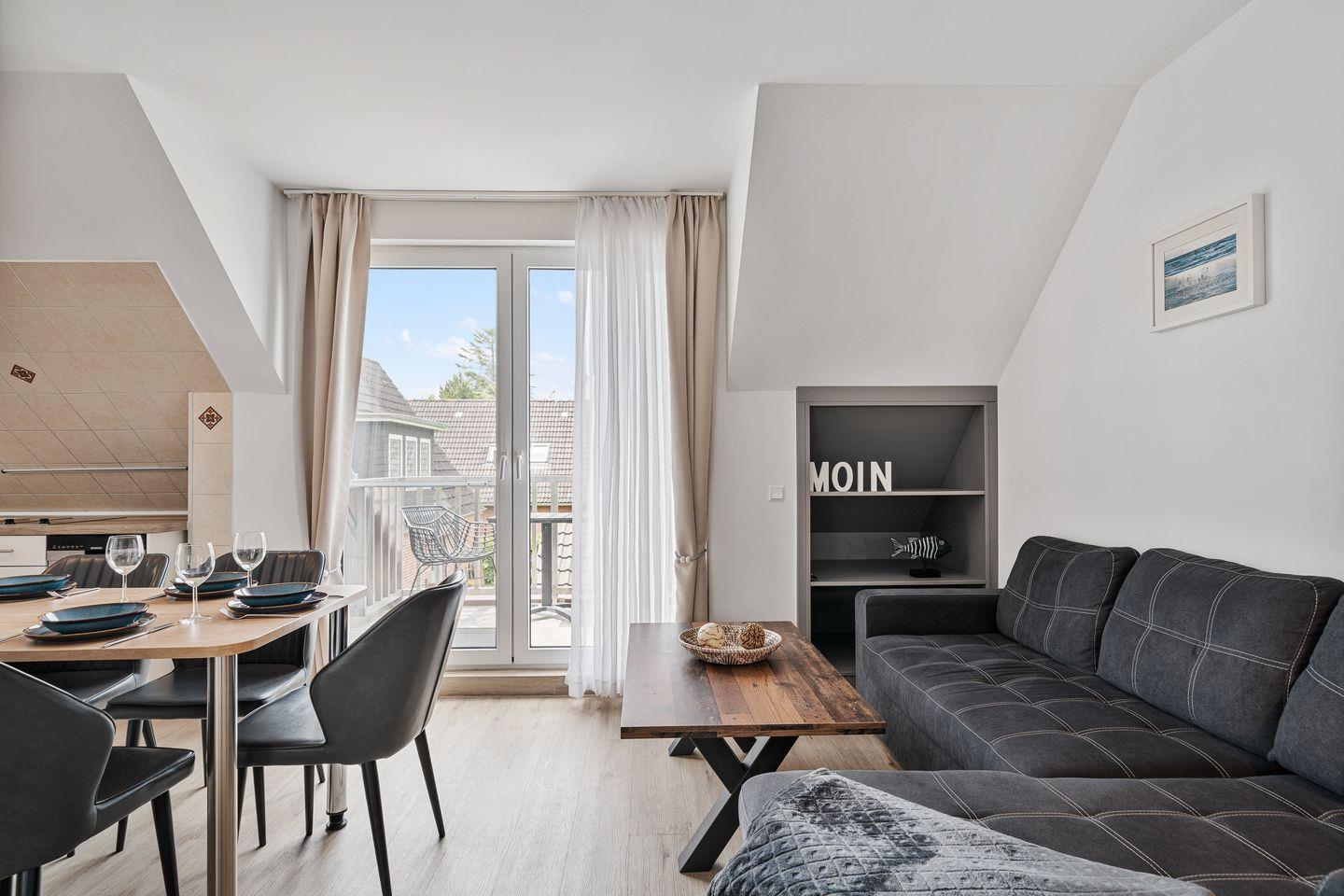 Die nordisch inspirierte Einrichtung mit modernen Möbeln, kombiniert mit einer ruhigen Lage im Ortsteil Ording, macht diese Wohnung zum perfekten Rückzugsort.