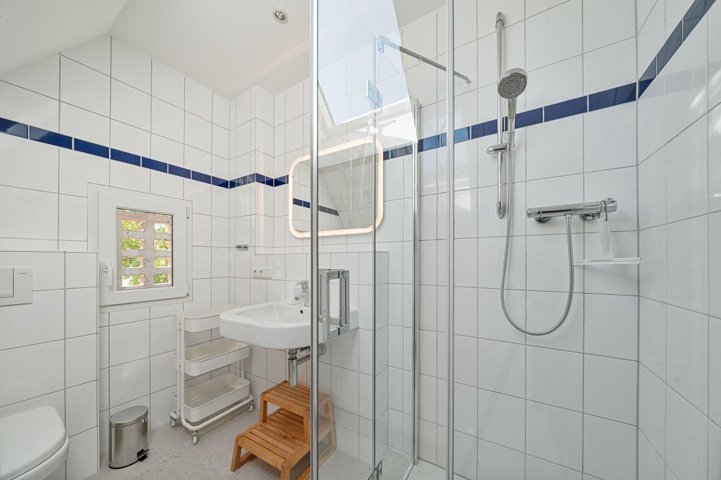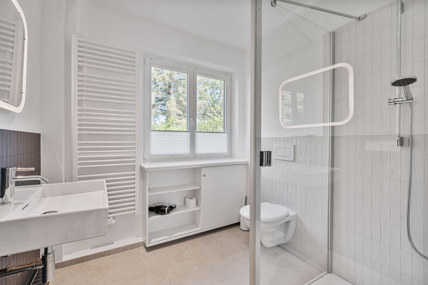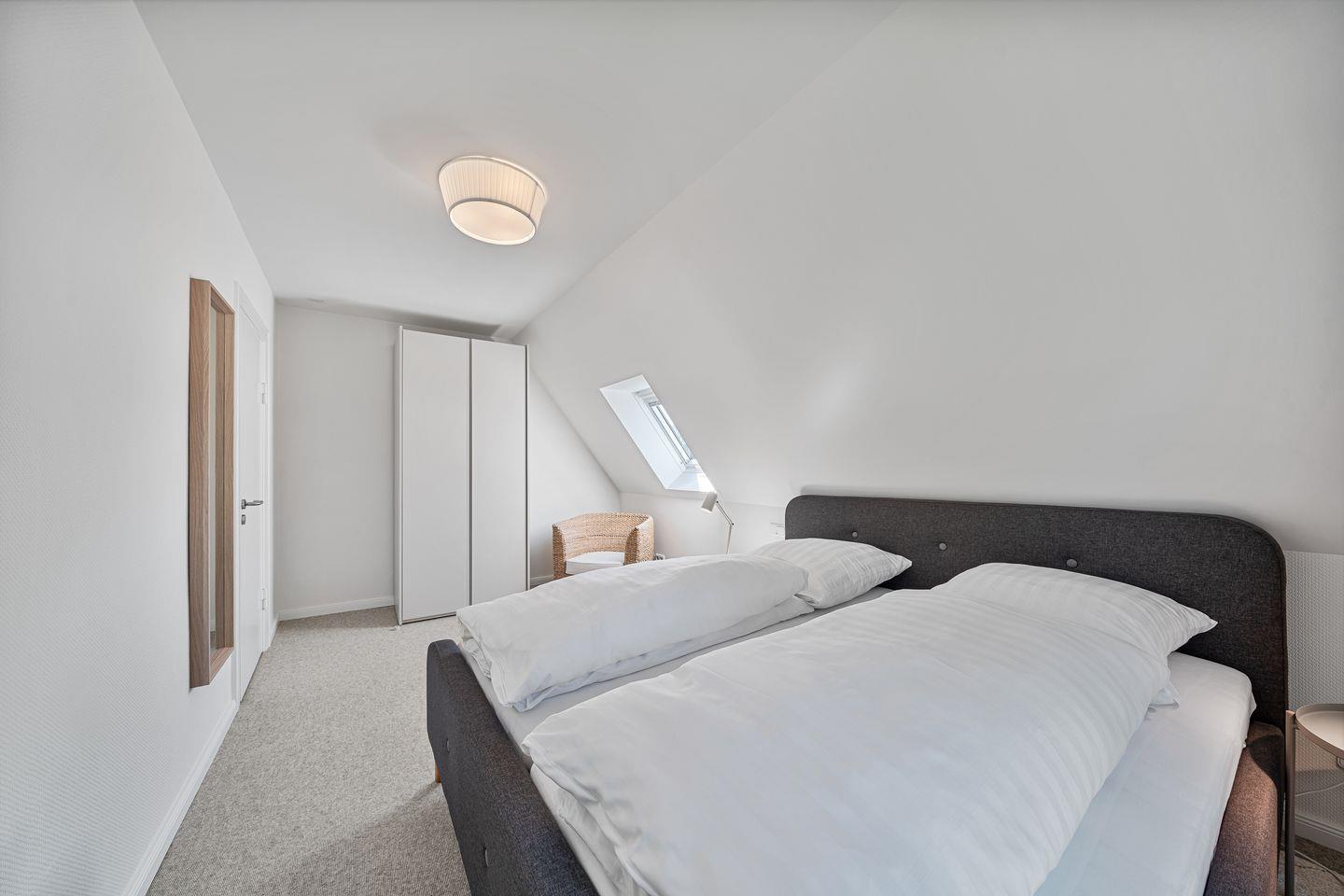 Drei separate Schlafzimmer bieten Schlafmöglichkeiten für insgesamt fünf Gäste. Ein Schlafzimmer verfügt über einen weiteren TV. Die mit hochwertigen Kaschmir-Ziegenhaar Teppichboden ausgestatteten Schlafräume sorgen für ein angenehmes Wohngefühl. Zwei moderne Badezimmer stehen Ihnen zur Verfügung, eines im Erdgeschoss und eines im Zwischengeschoss unter den Schlafräumen. Sie sind jeweils mit Dusche und WC ausgestattet.