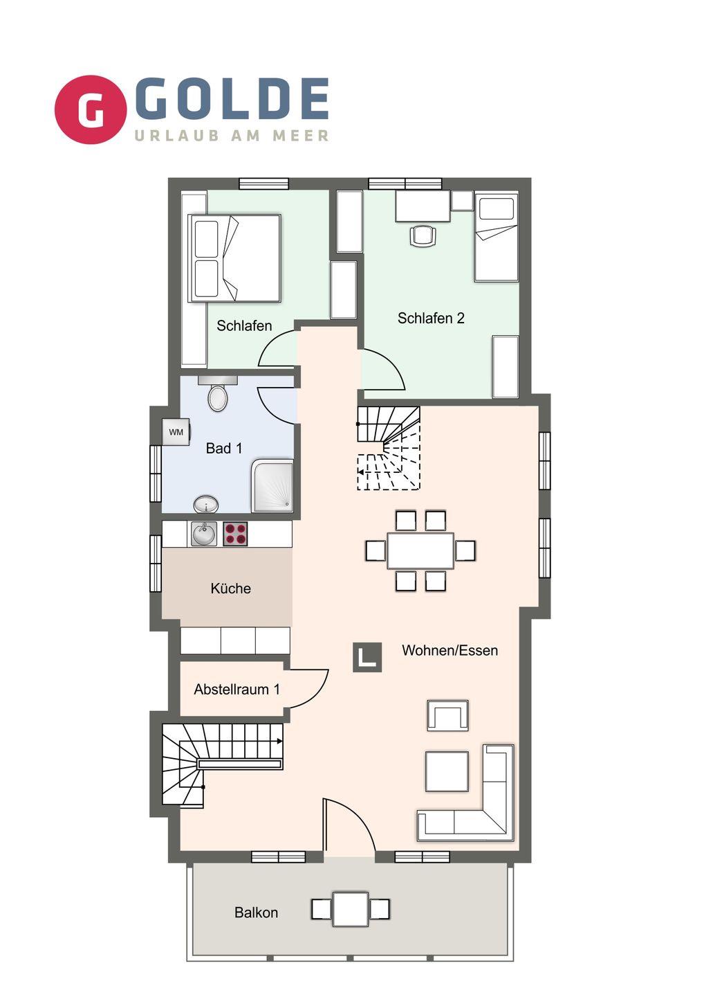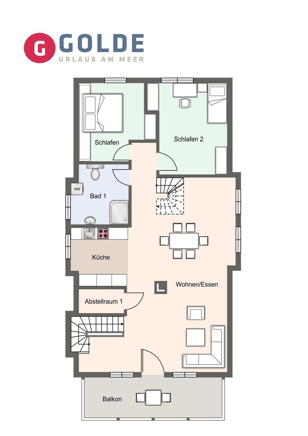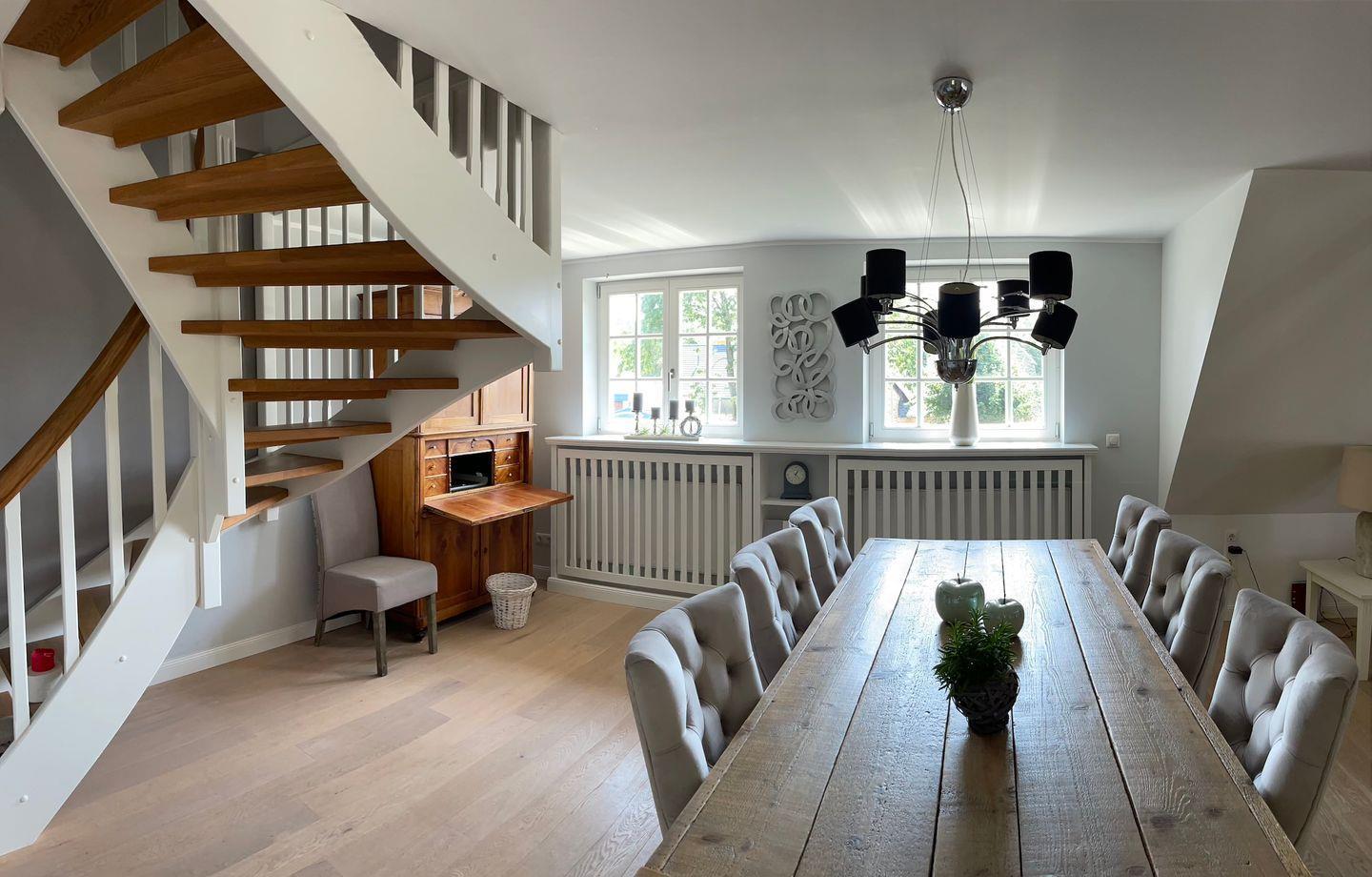 Die Obergeschosswohnung im Appelsnuut ist ein großzügiger, stilvoll eingerichteter Rückzugsort – mit hochwertiger Ausstattung und eigener Sauna für erholsame Urlaubstage an der Nordsee.