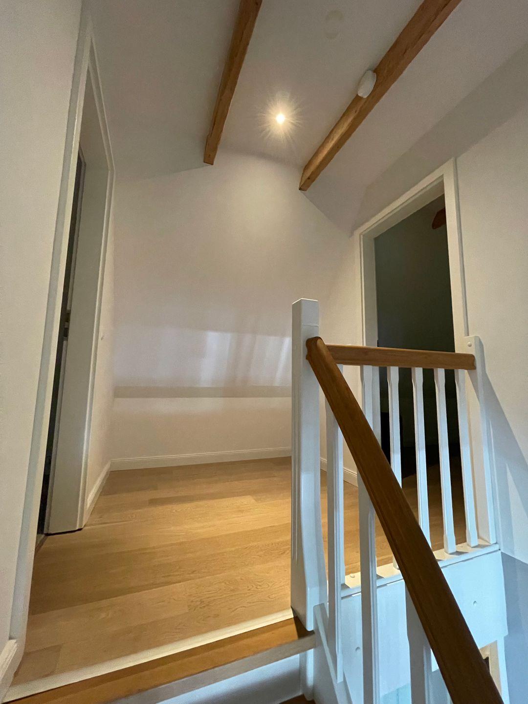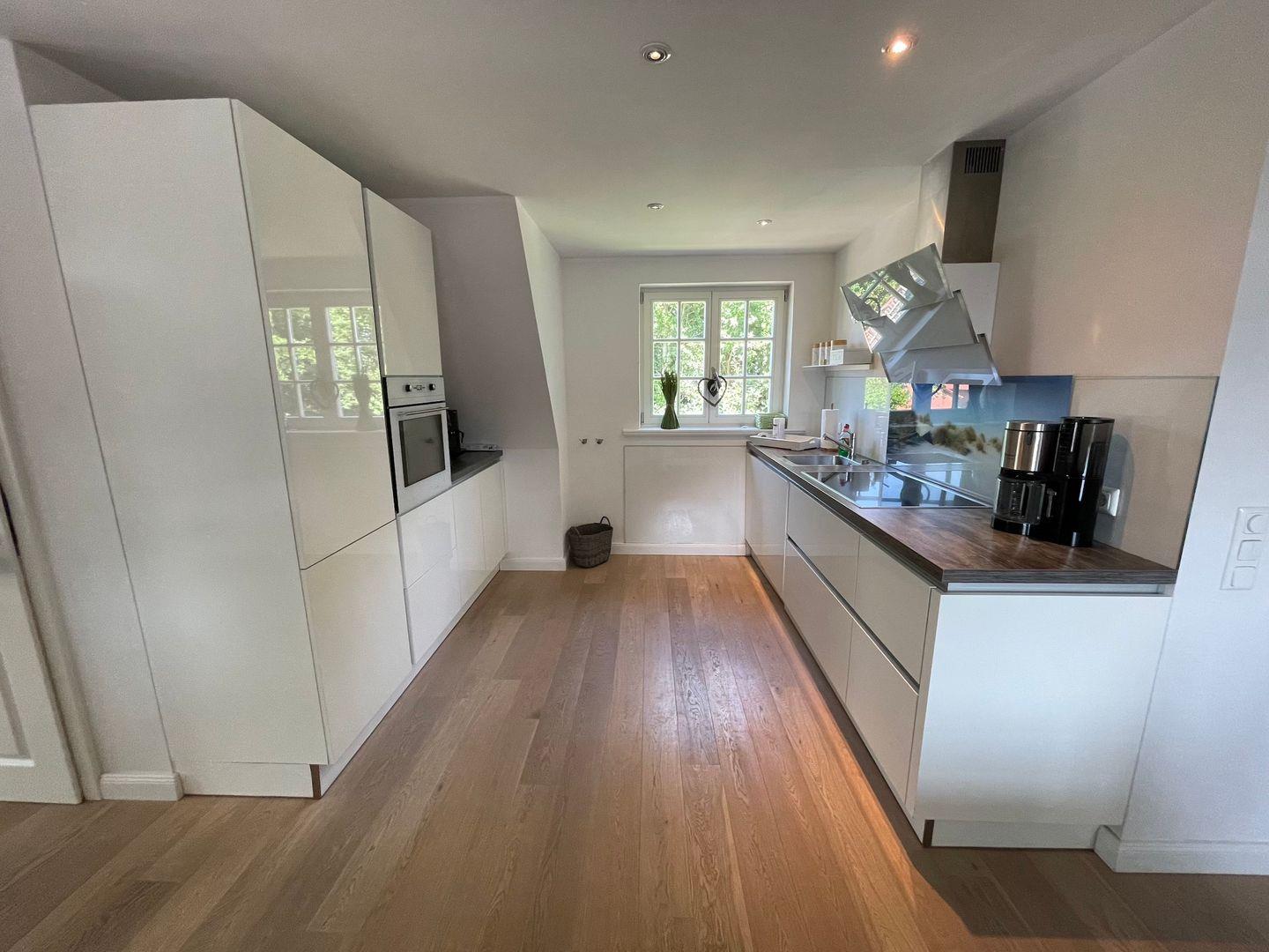 Der offene Wohn- und Essbereich ist mit Kaminofen, gemütlicher Sofaecke, Ambilight-TV und BOSE-Soundsystem ausgestattet. Die voll ausgestattete Küche bietet alles für entspannte Kochabende. Vom Wohnbereich gelangen Sie direkt auf den großen Balkon mit Blick ins Grüne. Über eine Außentreppe erreichen Sie zusätzlich einen eigenen Gartenanteil.