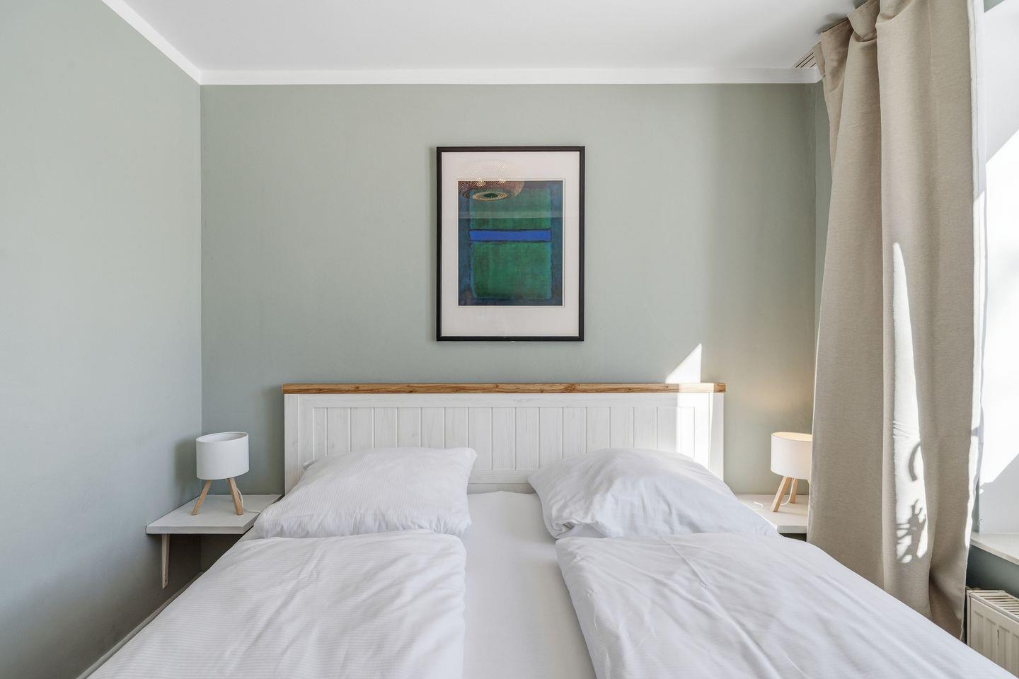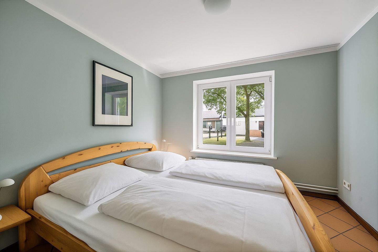 Vom Flur mit Garderobe, gelangen Sie in ein Duschbad, sowie in die zwei Doppelschlafzimmer (1,80 x 2,00 Meter und ein Bett 1,60 x 2,00 Meter)
