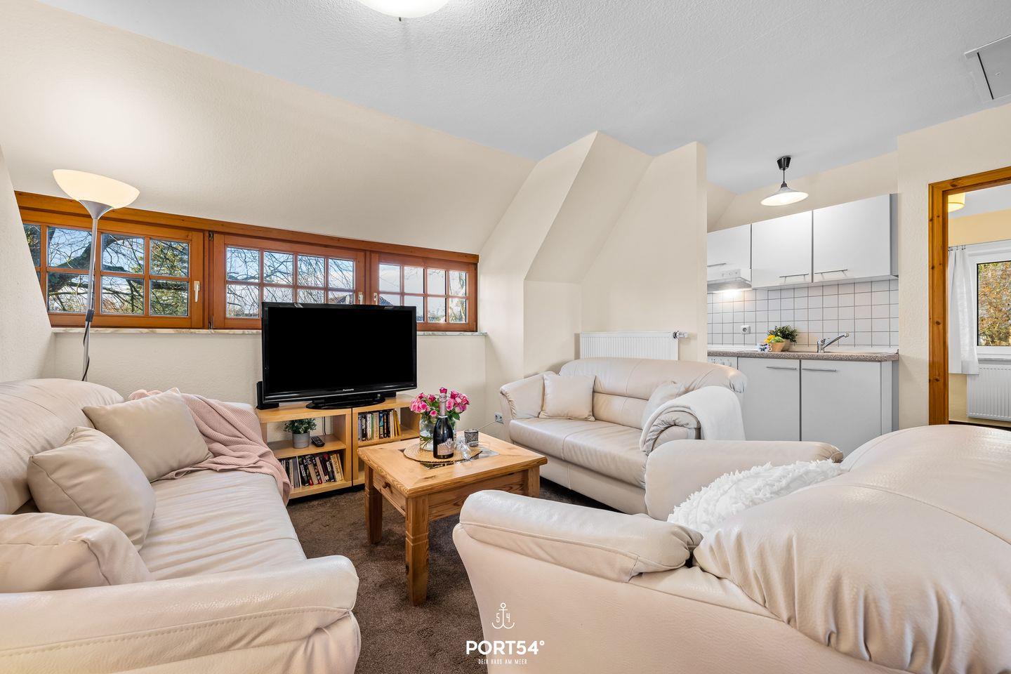 Die Unterkunft verfügt über ein separates Schlafzimmer mit Teppichboden, ein mit ca.65 cm erhöhtes und mit 2x2 m größeres Bett das für einen angenehmen Schlafkomfort sorgt. Das Fliegengitter am Fenster sorgt dazu ebenfalls noch für einen ruhigen Schlaf. Im gemütlichen Wohnzimmer, ebenfalls mit Teppichboden ausgelegt, finden Sie eine Sofaecke sowie einen Satelliten-TV für entspannte Abende. Der offene Wohn- und Essbereich verbindet Komfort mit Funktionalität: Am Esstisch können Sie gemeinsame Mahlzeiten genießen – sei es nach einem Tag am nahen Sandstrand oder nach ausgedehnten Spaziergängen in der Umgebung.