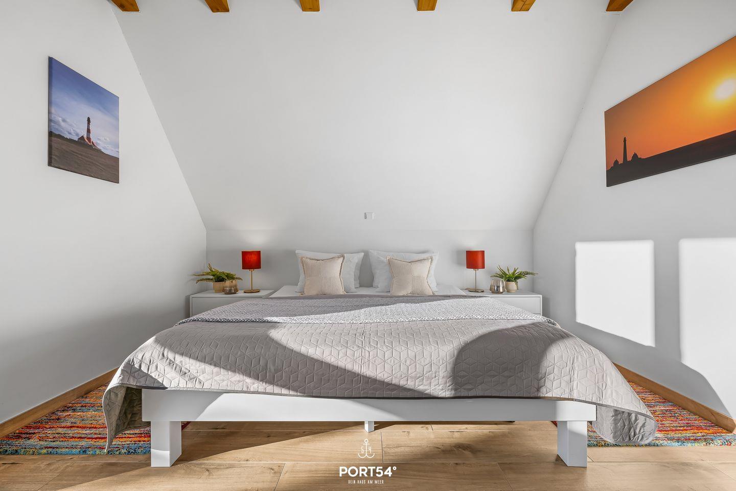 Die Nordsee mit ihrem berühmten Sandstrand erreichst du nach etwa 1,5 Kilometern bequem zu Fuß, per Fahrrad oder mit dem Auto. Die Lage ist ideal für Badeurlauber, Wassersportbegeisterte, Radfahrer und Wanderfreunde. Dein Urlaub kann aktiv gestaltet werden: Angeln, Segeln, Beachvolleyball, Reiten, Nordic Walking, Joggen oder Windsurfen – alles ist möglich. Auch kulturell Interessierte kommen auf ihre Kosten: Museen und Kirchen bieten abwechslungsreiche Unterhaltung. In unmittelbarer Nähe findest du zudem eine gute Auswahl an Restaurants, den Bahnhof sowie zahlreiche Freizeit- und Wellnessangebote.