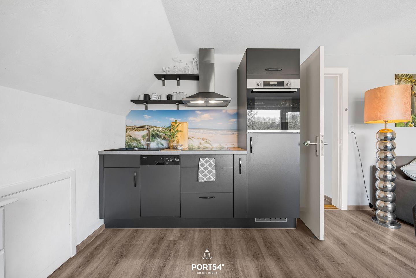 Im offen gestalteten Wohn- und Essbereich schafft die moderne, offene Küche mit Induktionsherd, Backofen, Kühlschrank mit Gefrierfach, Spülmaschine, Kaffeemaschine, Wasserkocher und Toaster optimale Voraussetzungen für die gemeinsame Zubereitung leckerer Mahlzeiten. Der Essbereich lädt dich zu geselligen Stunden ein, während das Sofa eine gemütliche Rückzugsmöglichkeit vor dem Sat-TV bietet. Gesellschaftsspiele stehen zur Verfügung, sodass du auch Regentage oder ruhige Abende angenehm verbringen kannst.