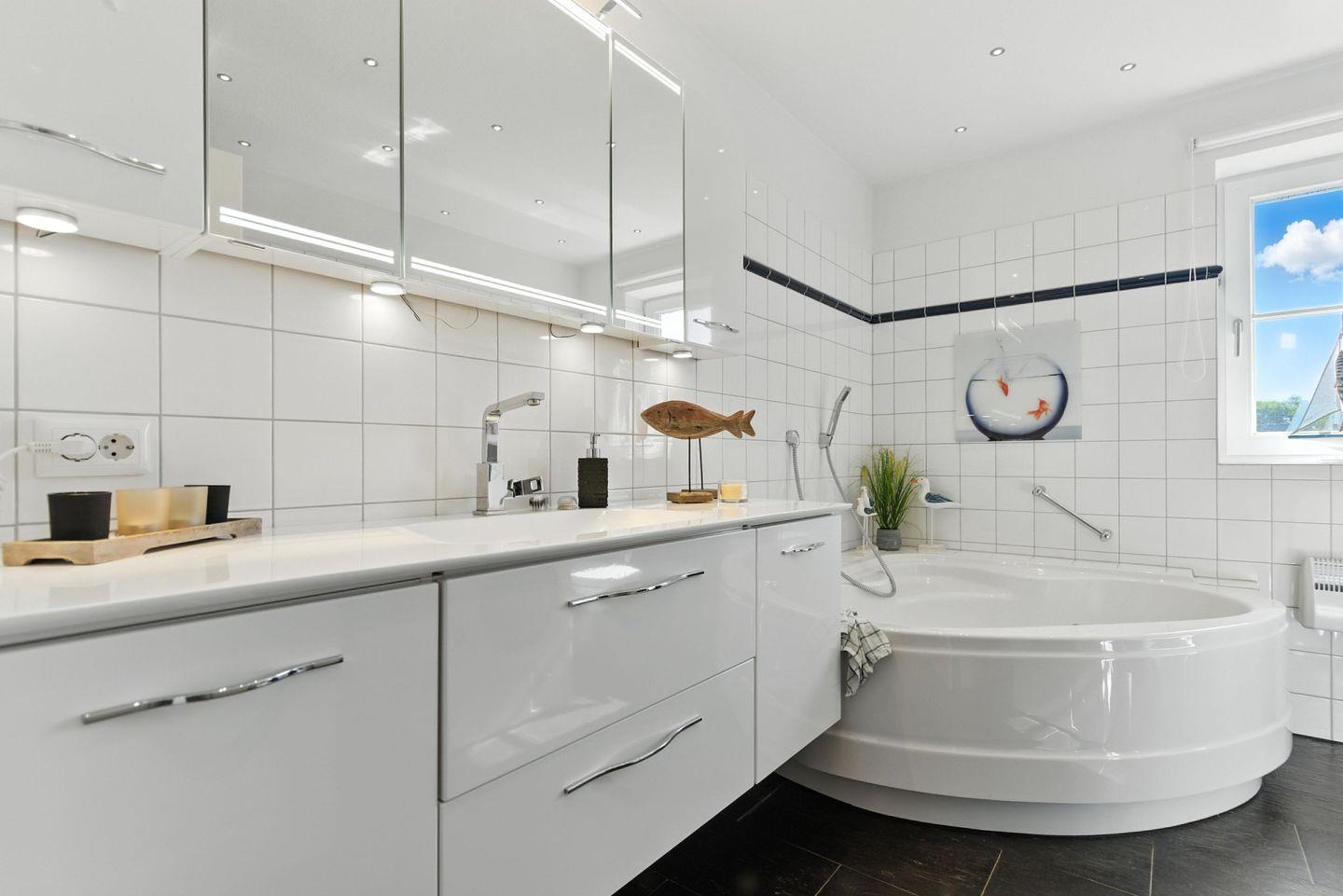 Das Appartement Heimathafen Westmarken in Sankt Peter-Ording bietet auf 93 m² im 1. Stock Platz für bis zu 7 Personen. 3 Schlafzimmer, Wohnzimmer mit Kaminofen, geschlossene Küche mit Spülmaschine und Backofen, WLAN (ab 25 MBit/s), Balkon und Garten mit Möbeln sorgen für Komfort. 2 Bäder (Duschen mit Wanne, Badewanne) plus Gäste-WC, Waschmaschine/Trockner sowie 2 Privatparkplätze. Strand/Meer ca. 3 km.