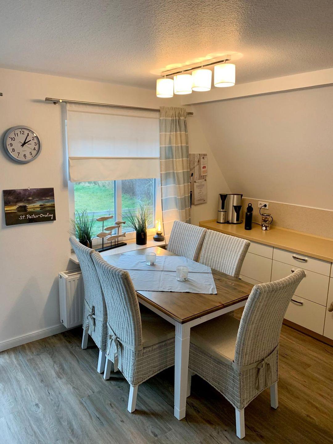 Idealer geht es kaum, die Wohnung liegt in einer ruhigen Einbahnstrasse, nur wenige Gehminuten zu den Dünen und den 12 Kilometer langen St.Peter-Ordinger Sandstrand. Genauso schnell erreicht man das Kurzentrum mit Wellnesscenter und die Dünentherme.