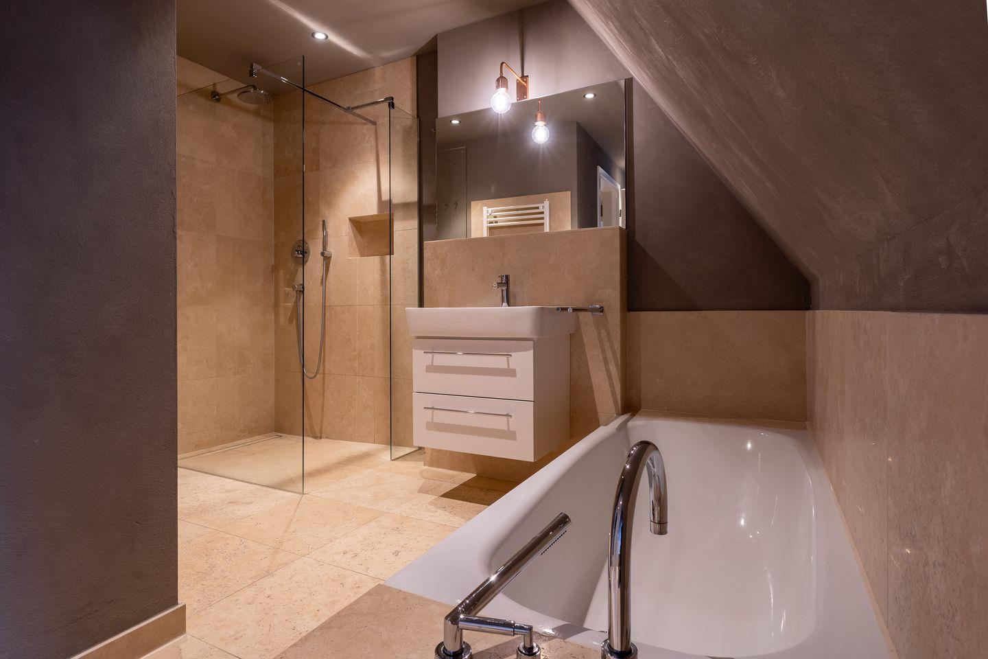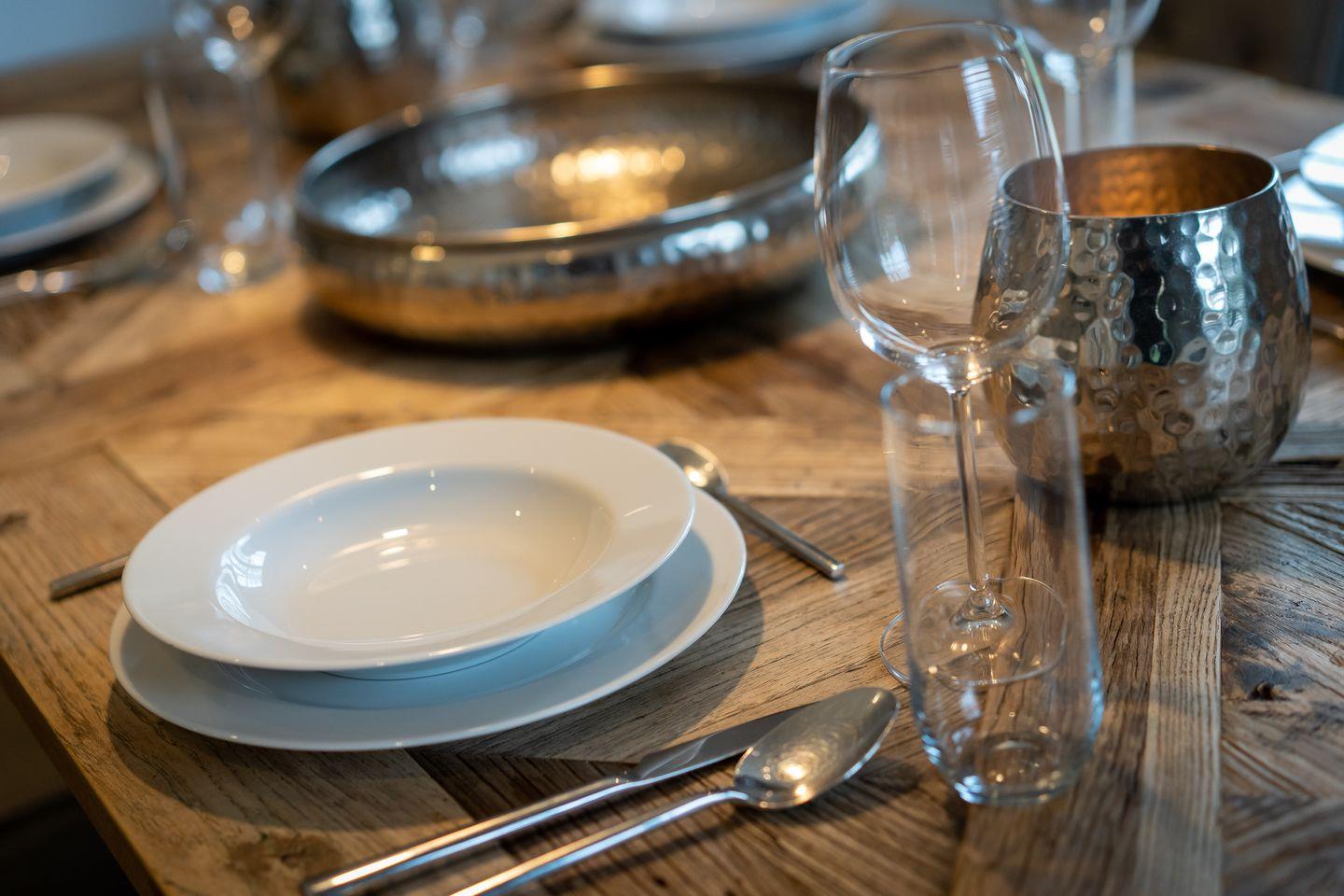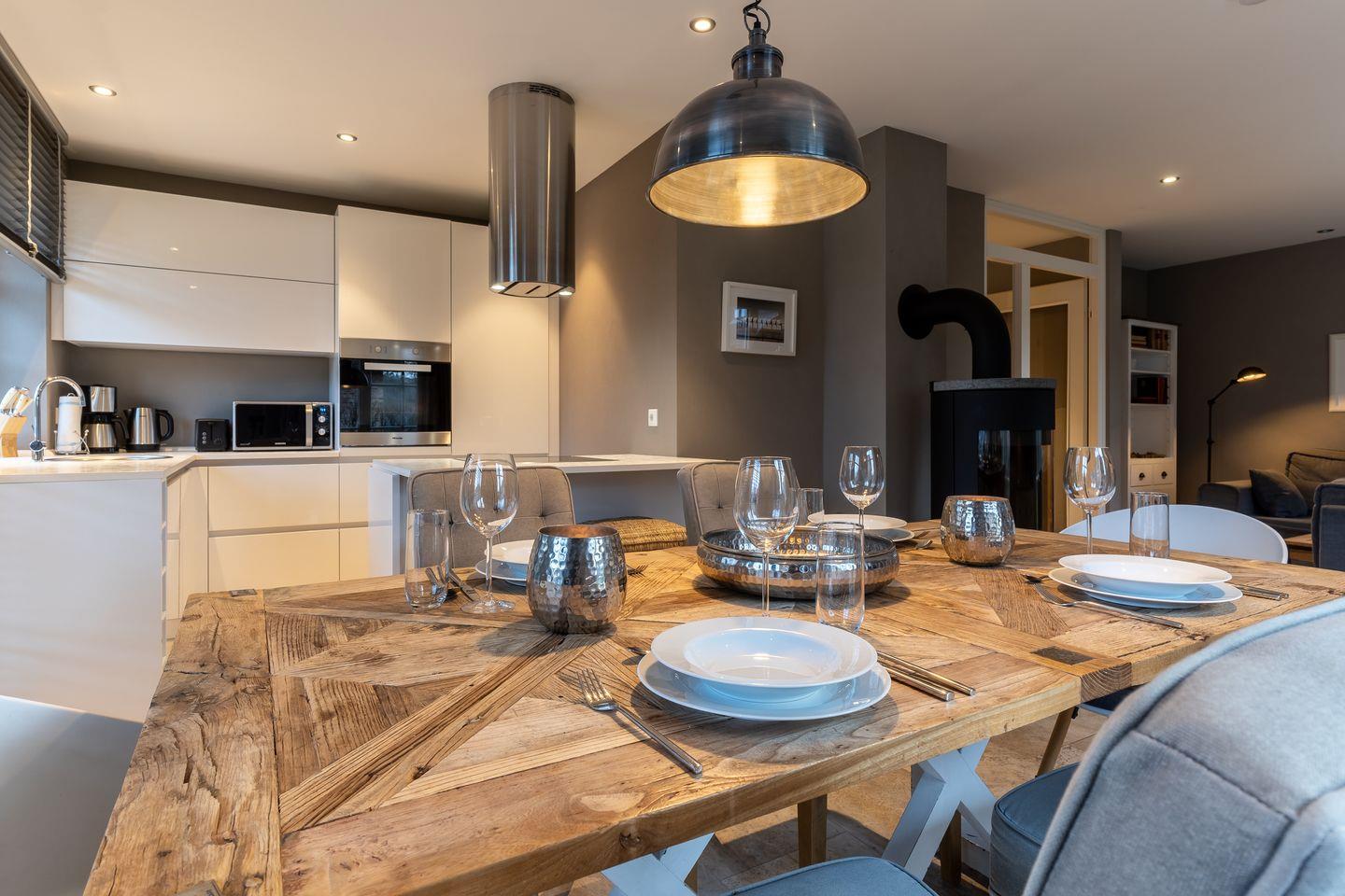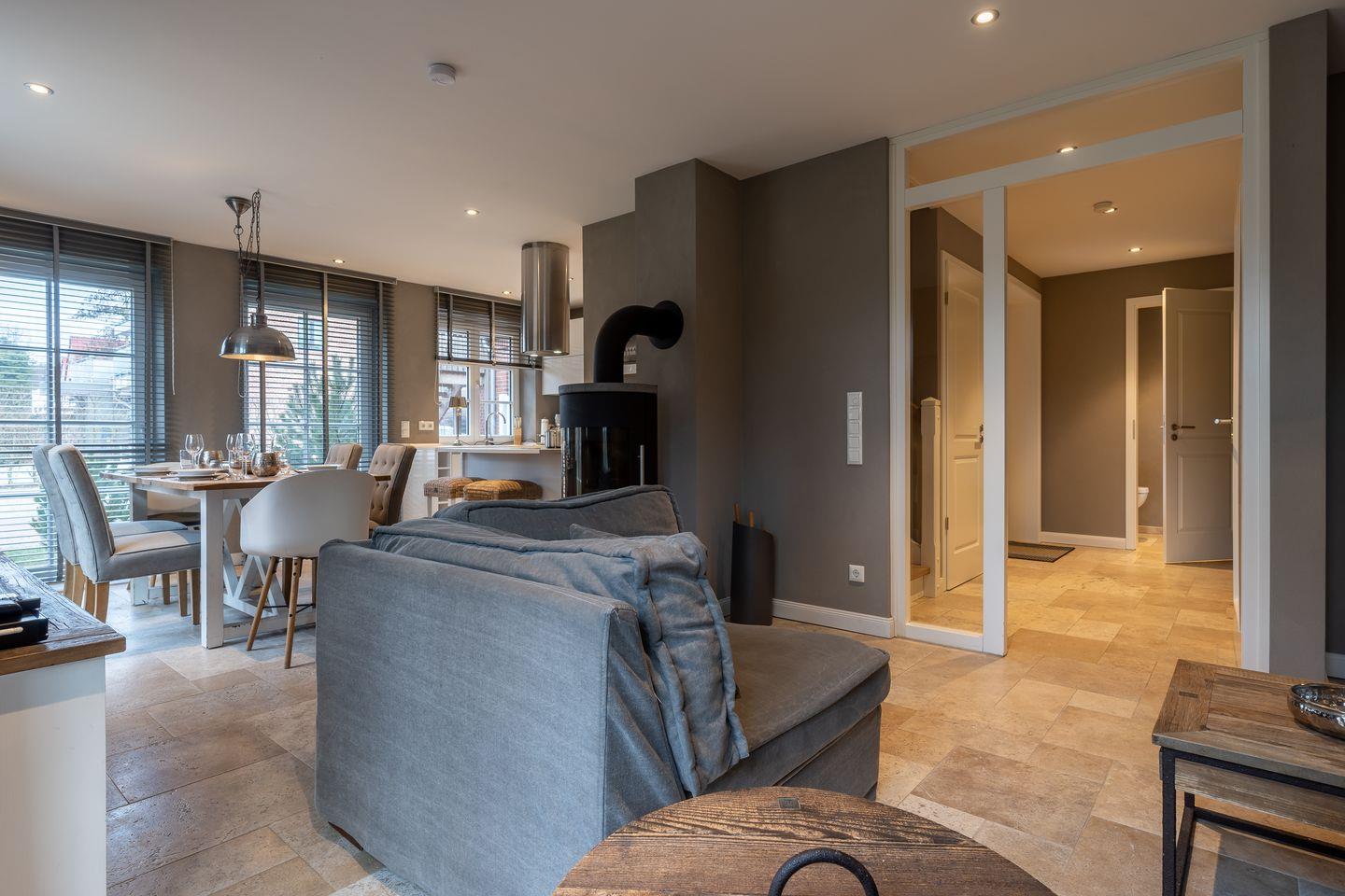 Die luxuriöse Haushälfte Dorfremise verfügt über ca. 120 m² Wohnfläche und bietet Platz für 6 Personen. Im Erdgeschoss befindet sich der lichtdurchflutete Wohnraum mit TV, Kamin, einer offener Küche sowie einem stilvollen Essbereich. Die Wohn- und Schlafräume sind mit exklusiven Möbeln von Riviera Maison ausgestattet. Die Küche verfügt über hochwertige Elektrogeräte. An den Wohnbereich schließen sich ein Flur mit eingebauter Garderobe, ein Hauswirtschaftsraum und ein mit edlem Sandstein gefliestes Duschbad an. Das Erdgeschoss verfügt über einen geschmackvollen Natursteinfußboden, der über eine Fußbodenheizung beheizt werden kann.