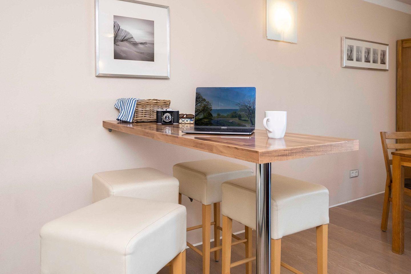 Extras wie WLAN (auch fürs Homeoffice geeignet), ein verschatteter Privatparkplatz, Fahrradabstellplatz, ein Wäschepaket, Waschmaschine im Haus (gegen Gebühr), sowie Babybett und Hochstuhl (auf Anfrage) runden das Angebot ab.
