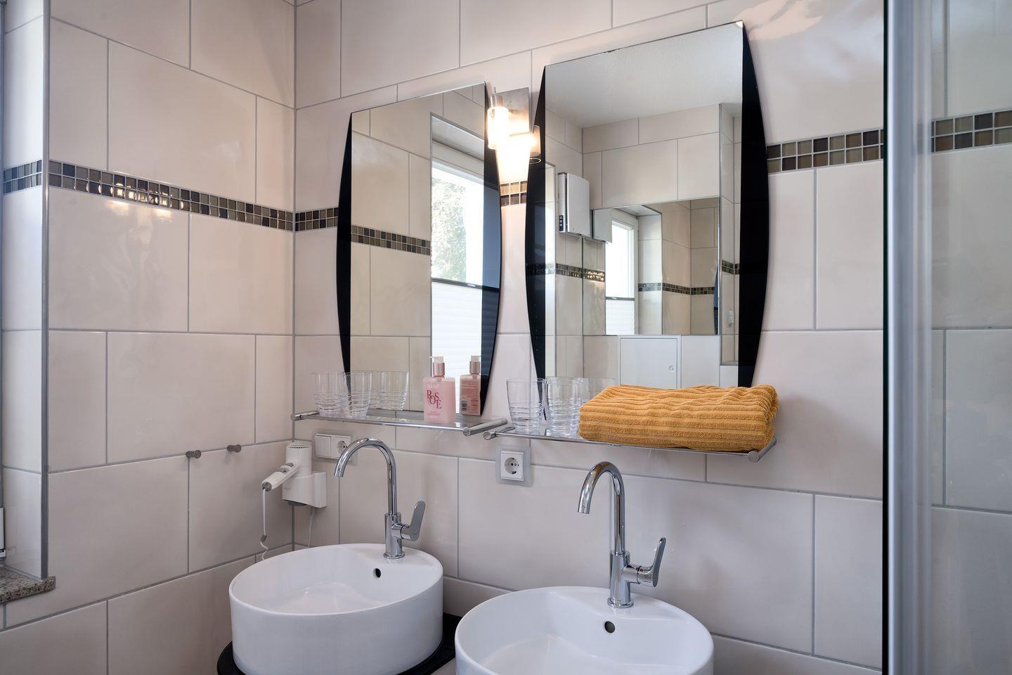 Unsere Gäste haben Zugang zur gesamten Ferienwohnung inklusive Wohnzimmer, zwei Schlafzimmern mit Balkon und Meerblick, dem großzügigen Badezimmer mit Dusche und Badewanne sowie einem separaten WC im Saunabereich.
