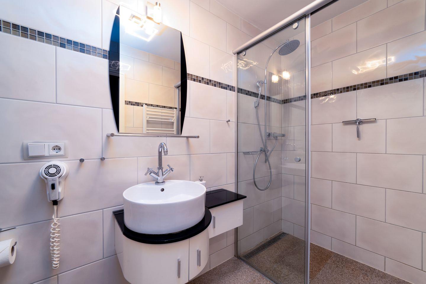 - Badezimmer mit Dusche, Waschbecken & WC