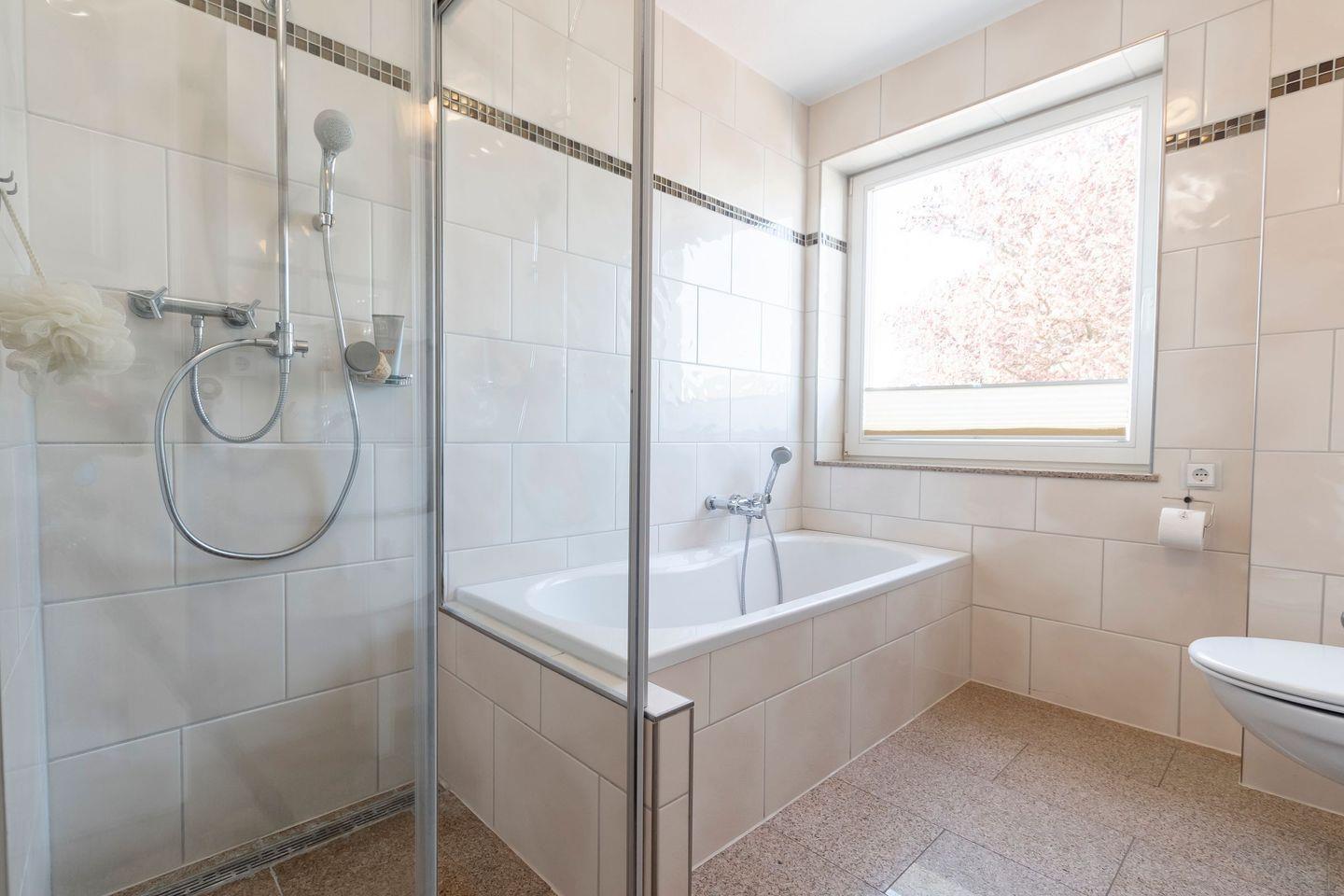 - Badezimmer 1: Dusche, WC, Waschbecken, Badewanne