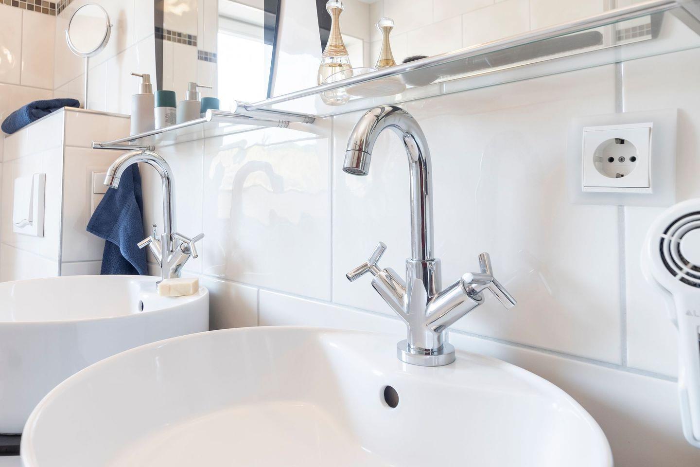 - Badezimmer 1: Dusche, WC, Waschbecken, Badewanne