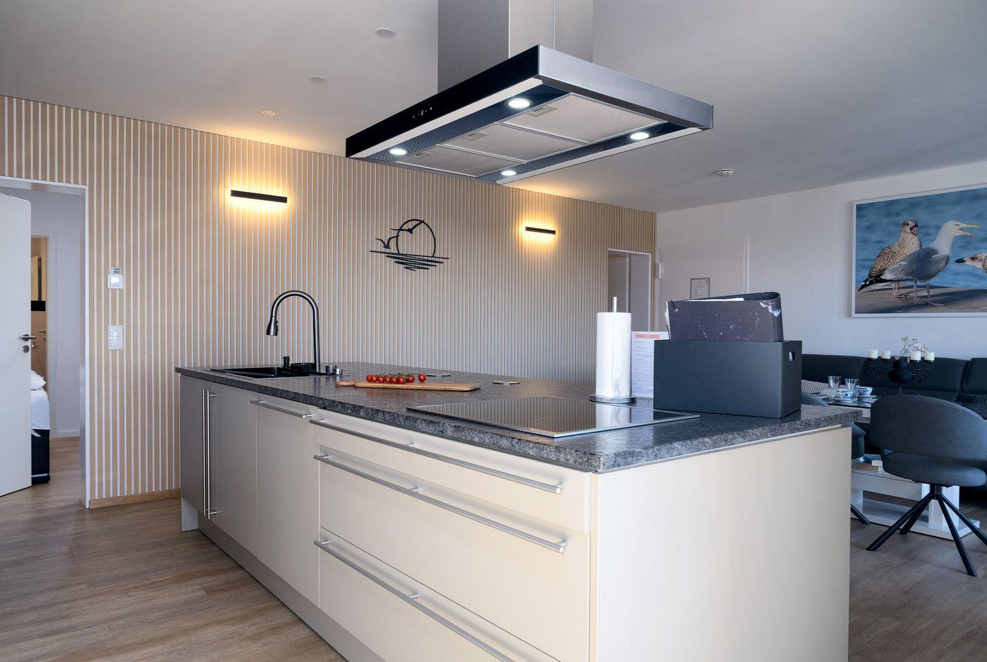 Die neu entstandene und modern ausgestattete Ferienwohnung „Silbermöwe“ bietet mit 82qm, aufgeteilt in zwei Schlafzimmern mit je angrenzendem Bad und einem großen Wohnraum mit Ostseepanoramablick und einer voll ausgestatteten Einbauküche alles, was das Urlauberherz
