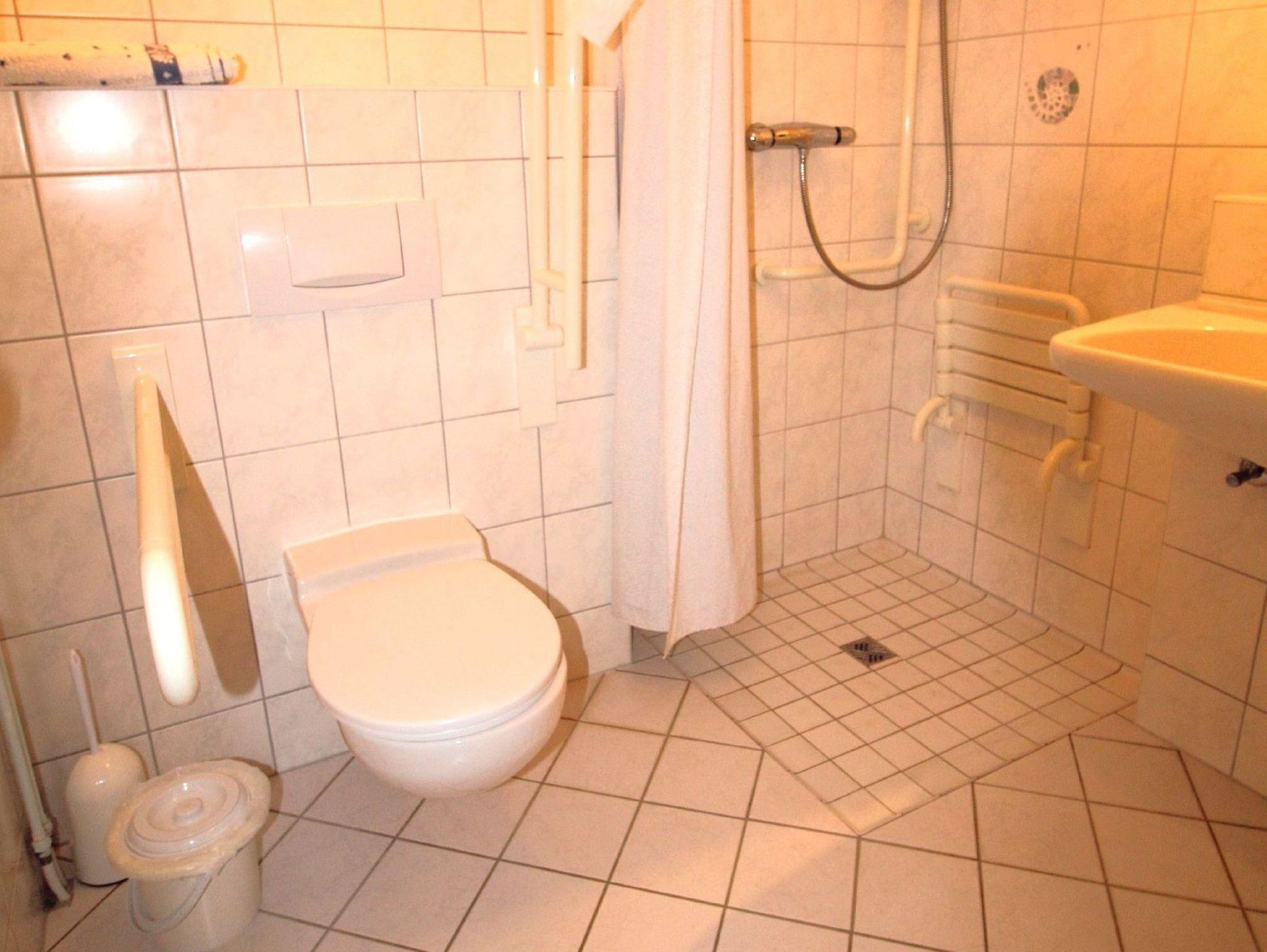 • Das Badezimmer verfügt über eine Dusche, Föhn und WC.