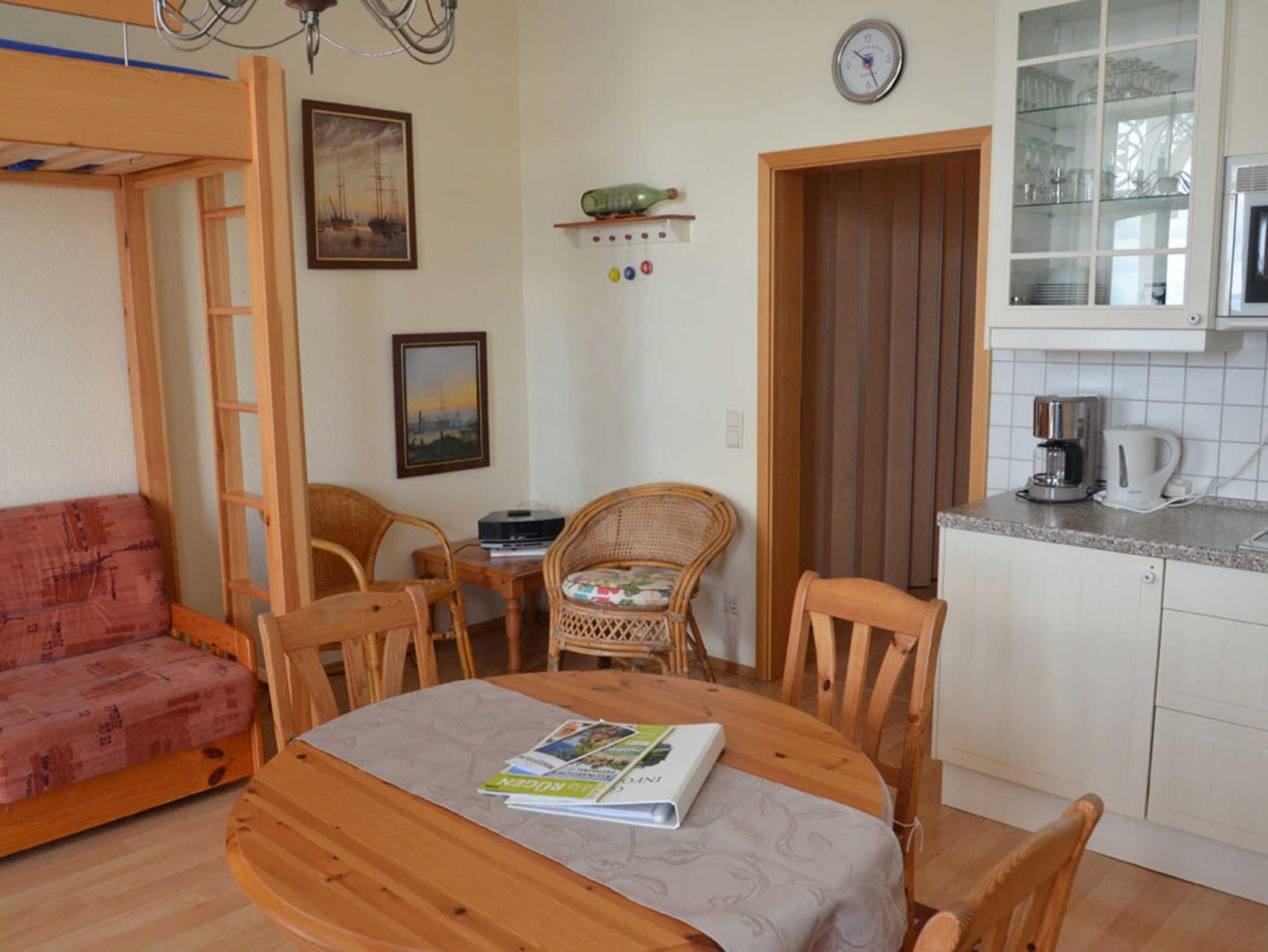 Sie genießen einen wunderschönen Seeblick, sehen Fährschiffe und Fischerboote vorbeiziehen und haben einen Weitblick bis hin zu den Ostseebädern Binz und Sellin.