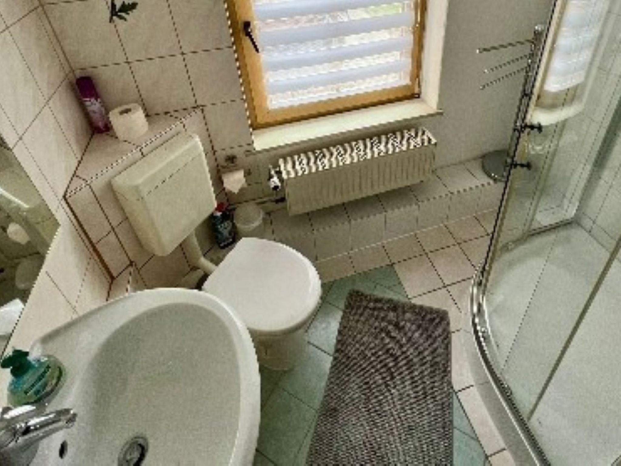 - Das Bad verfügt über eine Dusche, Waschtisch, Föhn und Toilette.
