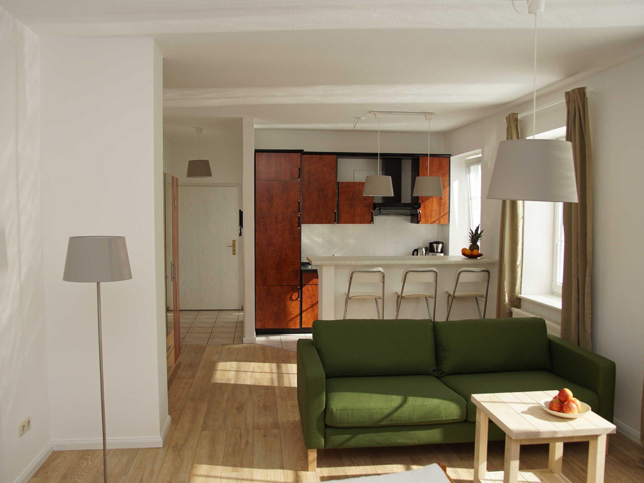 Großzügig geschnittene 1-Raum Ferienwohnung im Erdgeschoss gelegen, Größe ca. 44m², für Singles oder Paare (2 Personen) zzgl. Babybett.