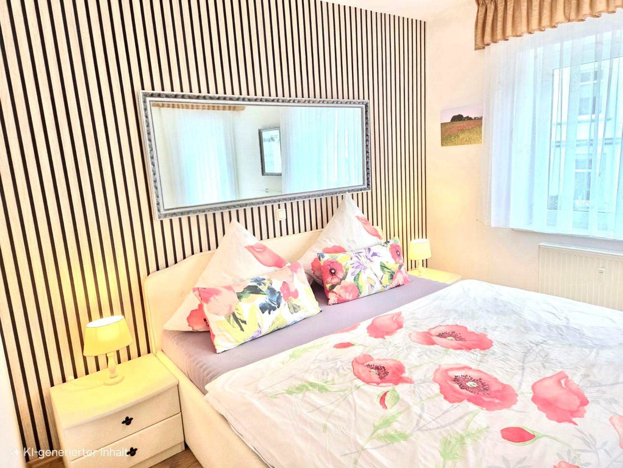 Ferienwohnung Mohnblume, Sassnitz. Diese Komfort-Ferienwohnung befindet sich in bevorzugter Lage am Hochufer im ersten Stock eines gepflegten Apartmenthauses in ruhiger Lage aber sehr Zentral. Sie verfügt über einen großen lichtdurchfluteten Wohnraum mit 2 gemütlichen Sofas, und einem Sessel, die zum Sat.- Fernsehen oder zum Musikhören einladen,oder gehen sie von hier auf den Balkon mit schönen Holzmöbeln Sitzkissen und Sonnenschirm und geniessen zb. leckeren Fisch den sie gerade am Hafen direkt vom Fischer geholt haben und in der kompletten Einbauküche mit allem Komfort , wie Geschirrspüler,Mikrowelle,Ceranfeld,Kühl-Gefrierkombi usw mit Freude zubereiten können.Angrenzend ist der Esstisch mit 4 gemütlichen Stühlen.Die Nacht geniessen sie im grosszügigen Schlafzimmer mit Doppelbett und 2. Balkon und im zweiten Schlafzimmer mit 2 Einzelbetten.Im Bad erwartet sie zum Entspannen eine Wanne. Auch ihr Auto hat einen eigenen PKW-Stellplatz auf dem Hof. Fahrradständer vorhanden. Bettwäsche inklusive. Handtücher bitte selbst mitbringen.