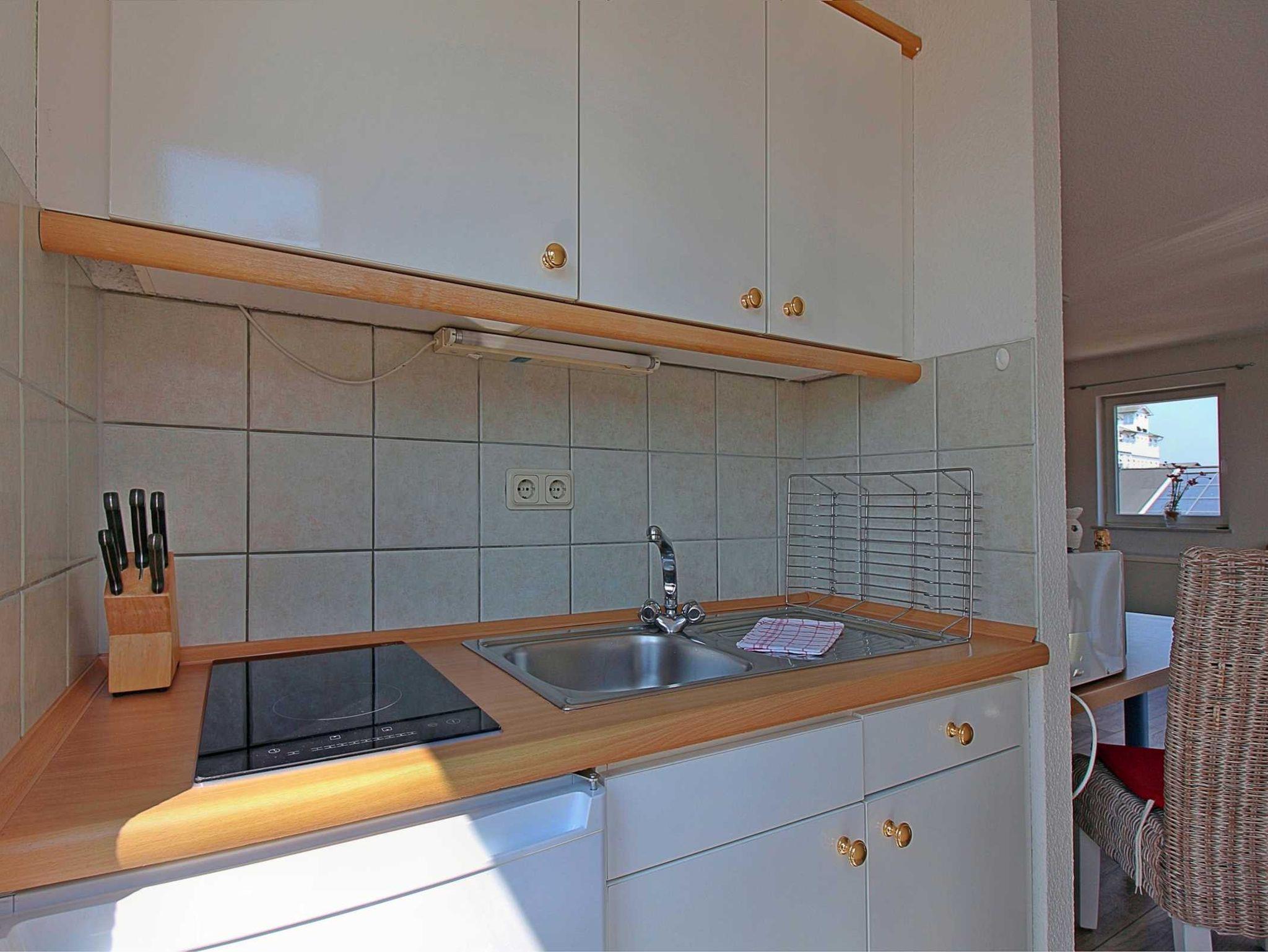 - Küchenzeile mit 2-Kochstellen-Ceranfeld, Kühlschrank mit ***-Gefrierfach, Mikrowelle, Toaster, Wasserkocher, Kaffeemaschine, Eierkocher sowie natürlich Geschirr und Besteck