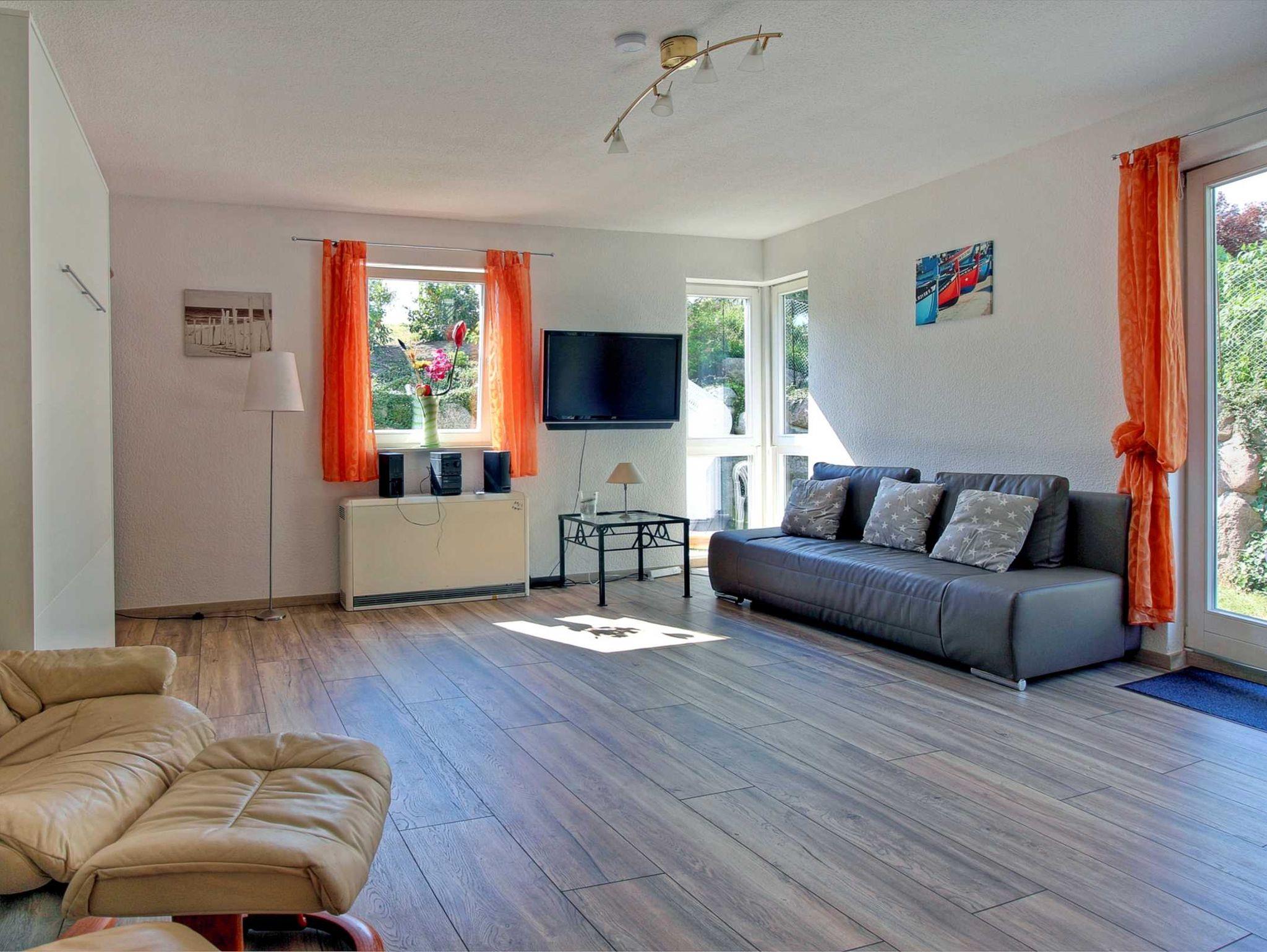 - Kombinierter Wohn-Schlafraum mit Schrankbett (1,60 m x 2,00 m, getrennte Matratzen), Sitzecke mit 2 Relaxsesseln, Couch, Flachbildfernseher, Stereoanlage, DVD-Player, Kleiderschrank