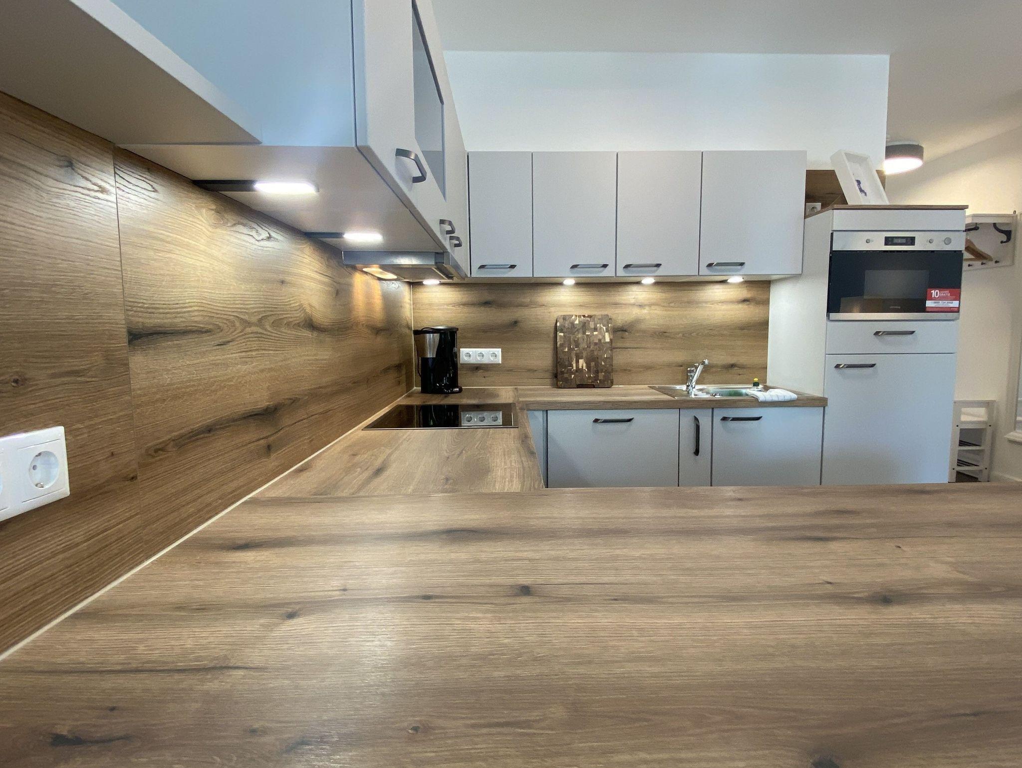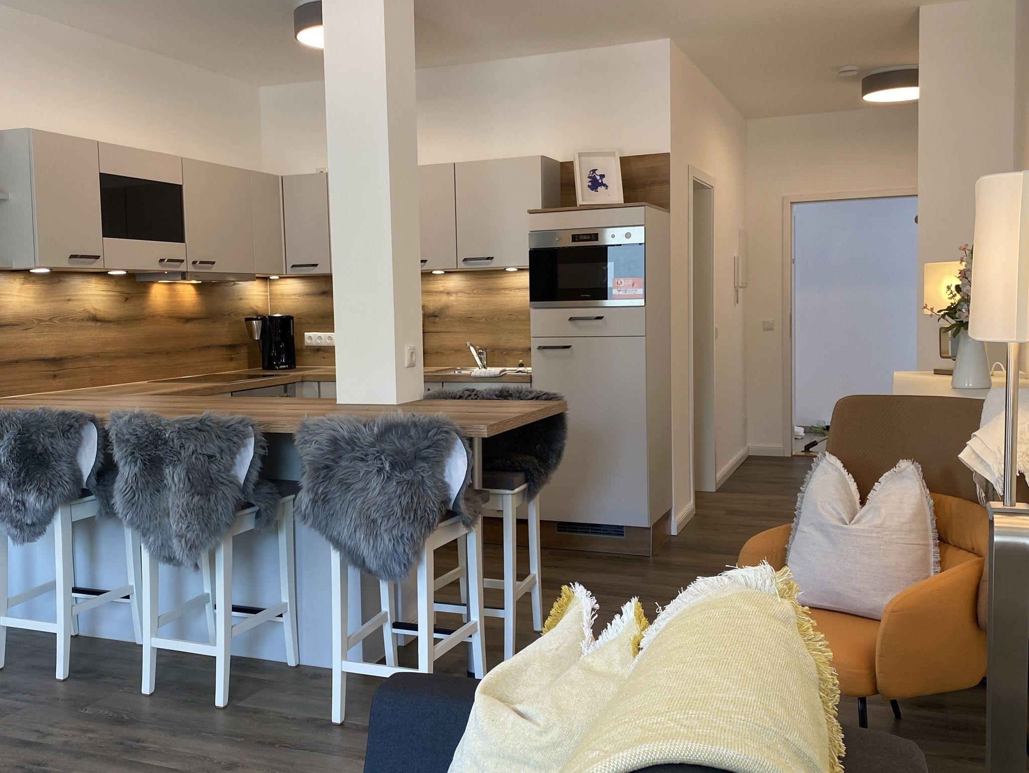 Große Wohküche mit Sitztresen für bis zu 6 Personen.