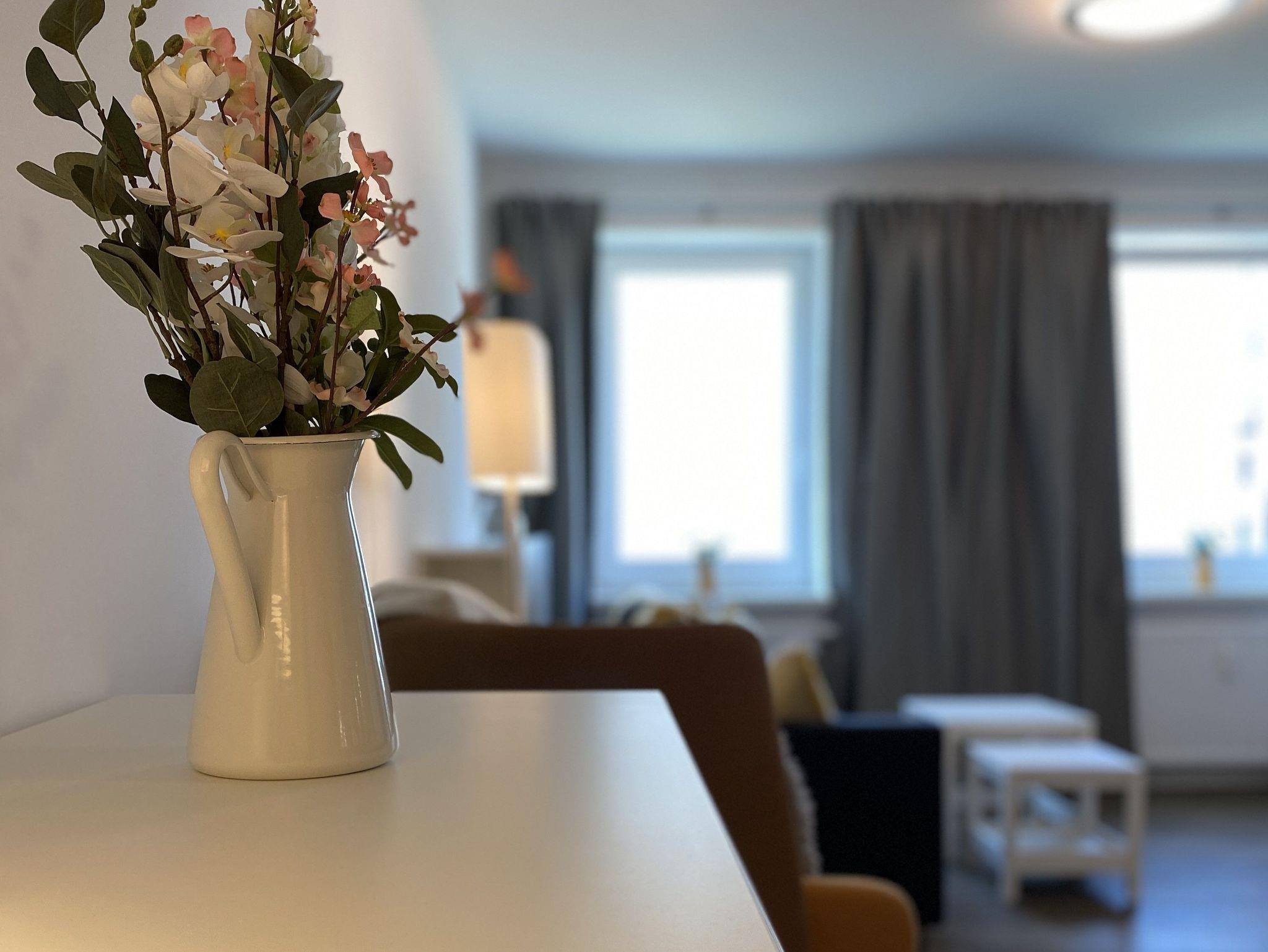 2 Raum-Ferienwohnung 58 m², Nichtraucher, für bis zu 4 Erwachsene und bis zu 2 Babybetten, gelegen im Erdgeschoss.
