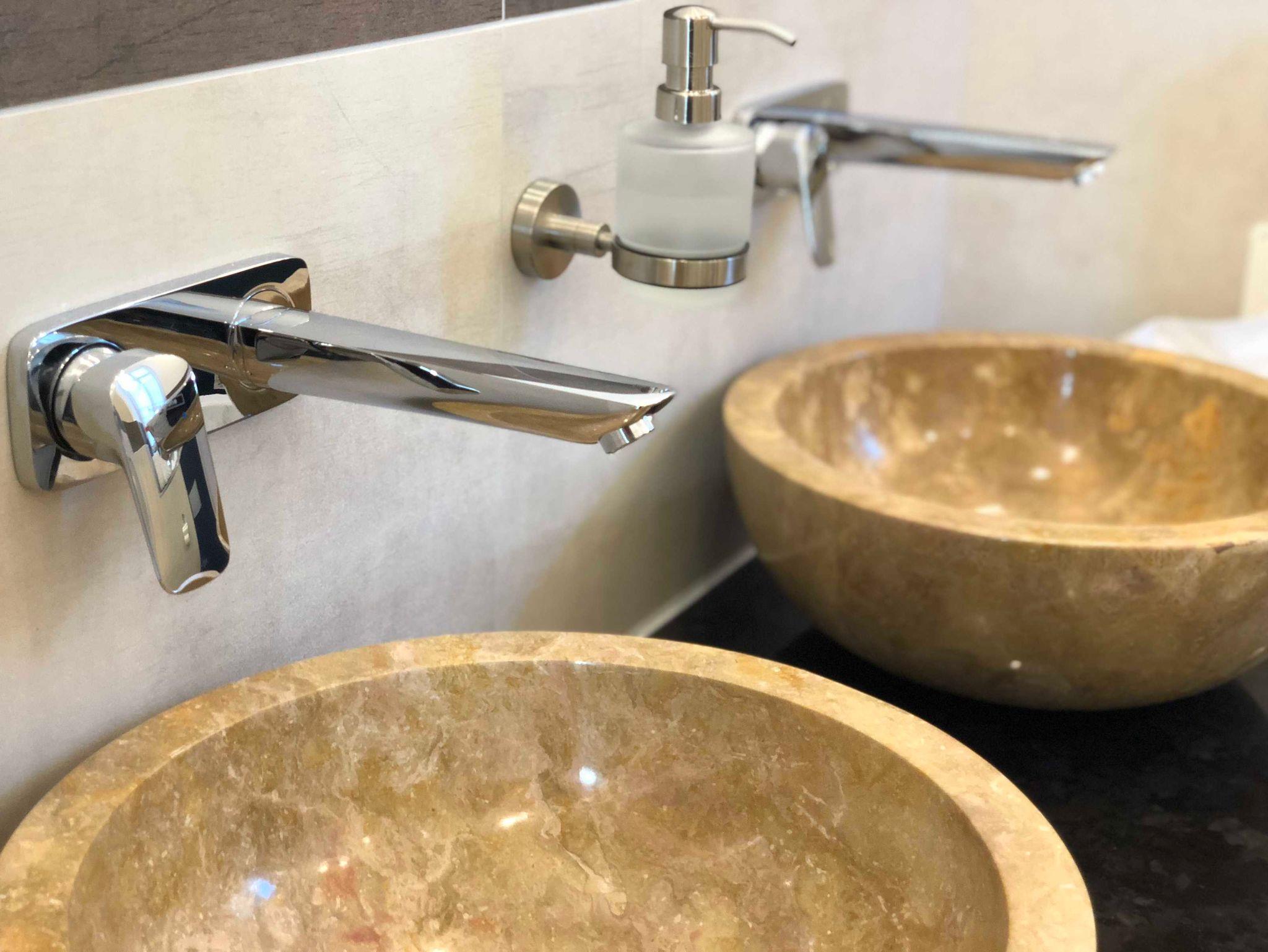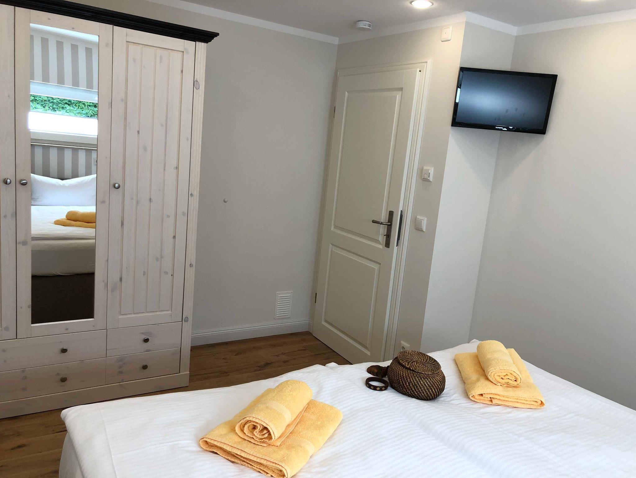- 2 Bäder mit ebenerdiger Dusche, 1 davon mit Badewanne und LED-TV