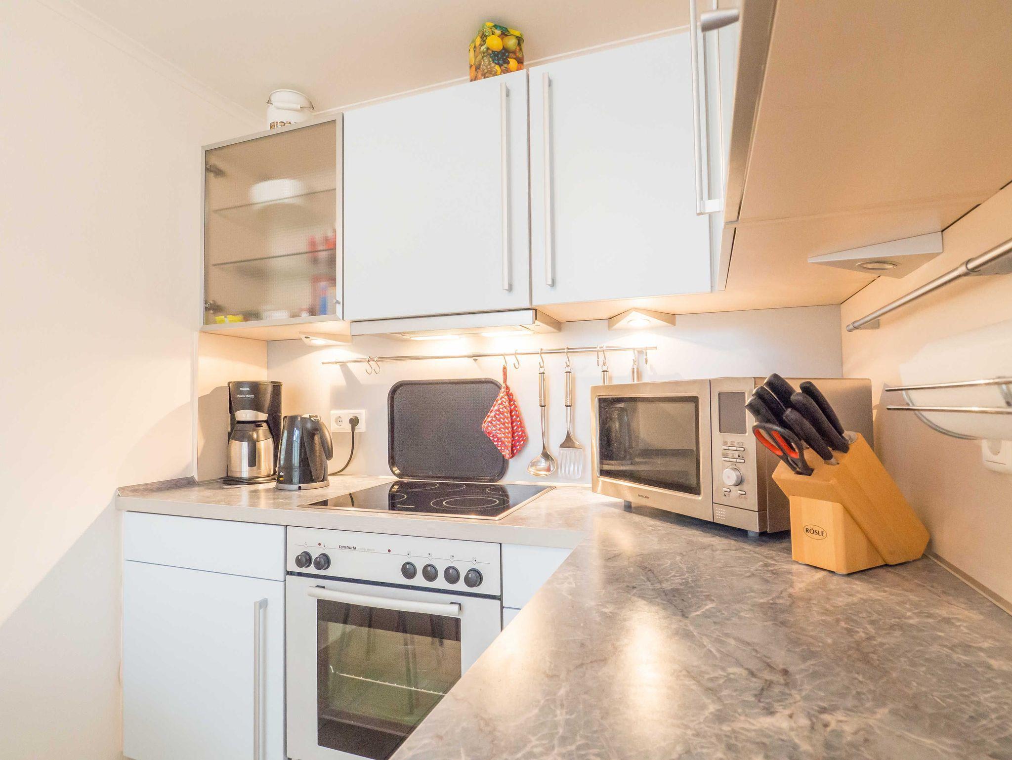 Eine vollausgestattete Küche bietet ihnen die Möglichkeit ganz nach den eigenen Bedürfnissen Gerichte zuzubereiten. Für eine Nespressomaschine bitte geeignete Kapseln mitbringen.